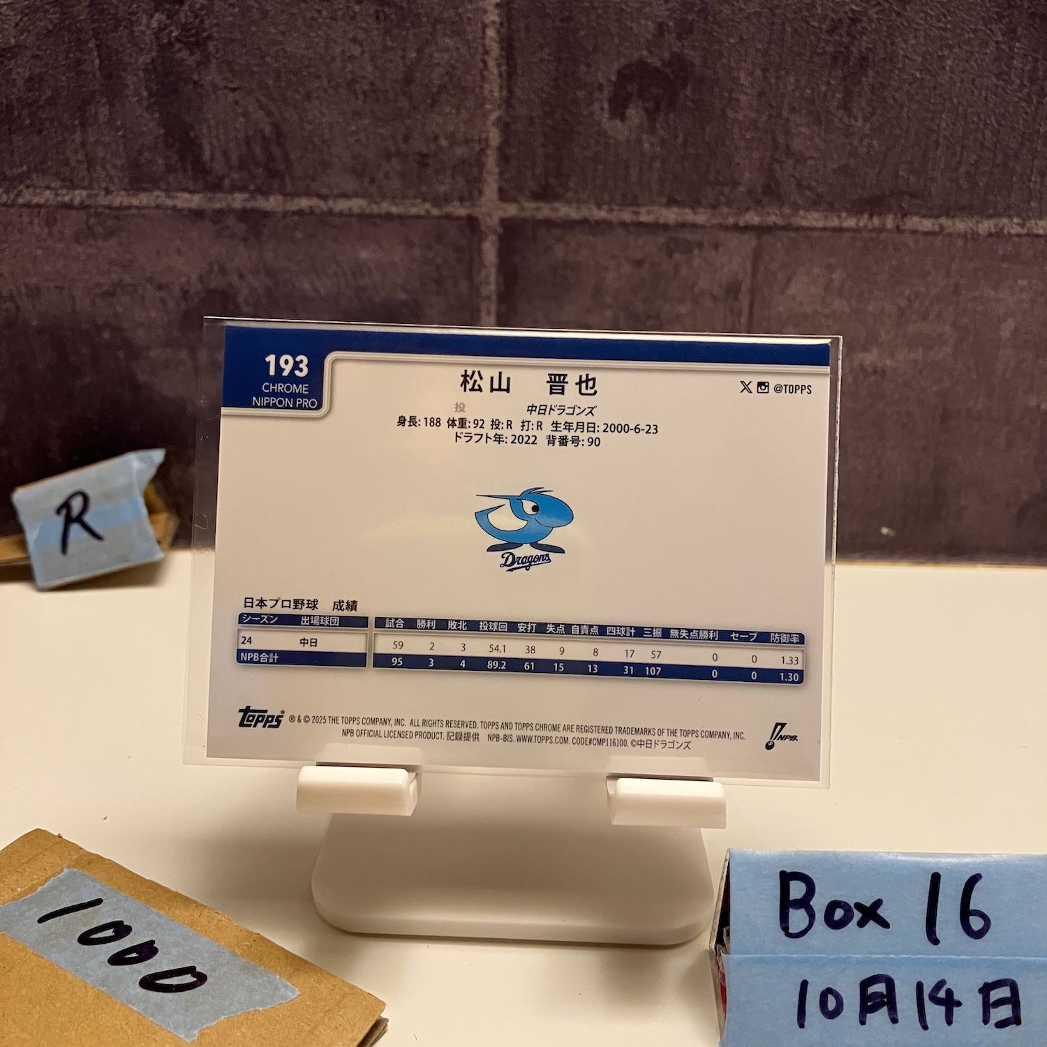 2023 Topps Chrome NPB 松山晋也 Shinya Matsuyama 027/250 中日ドラゴンズ Purple Refractor Parallel カード