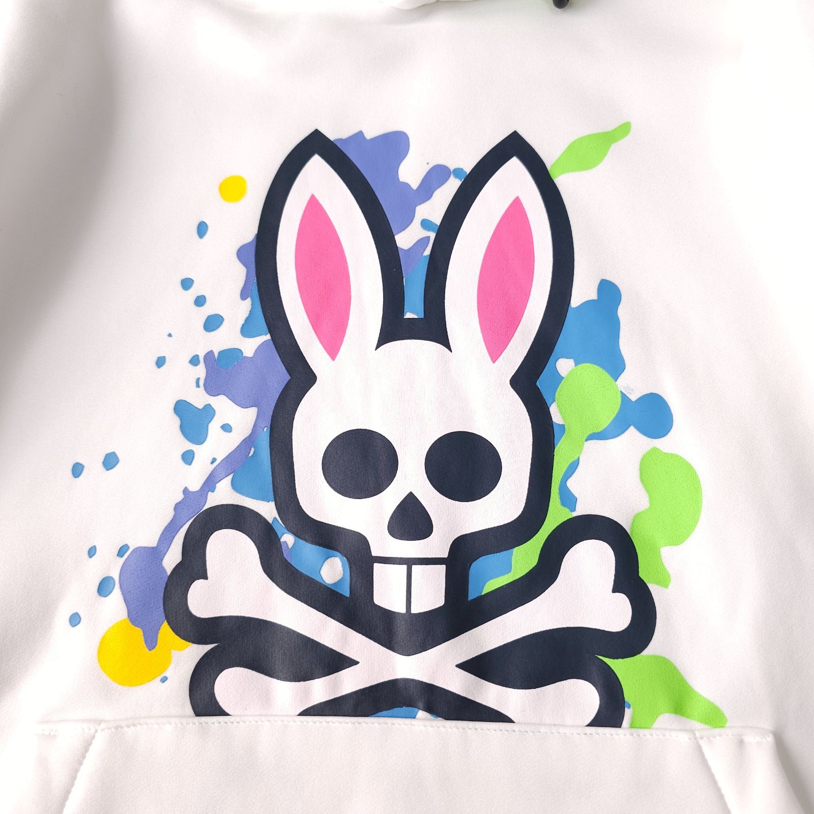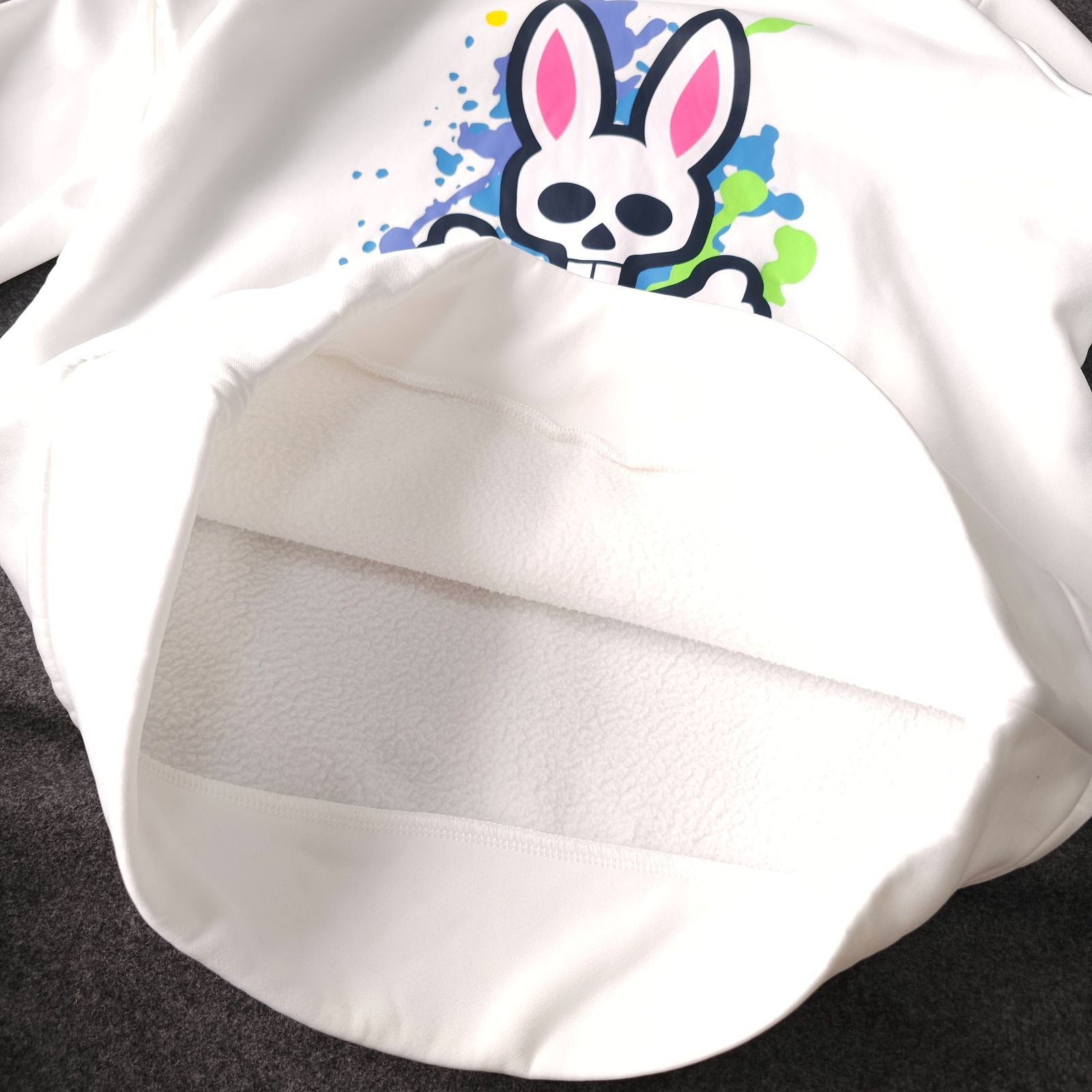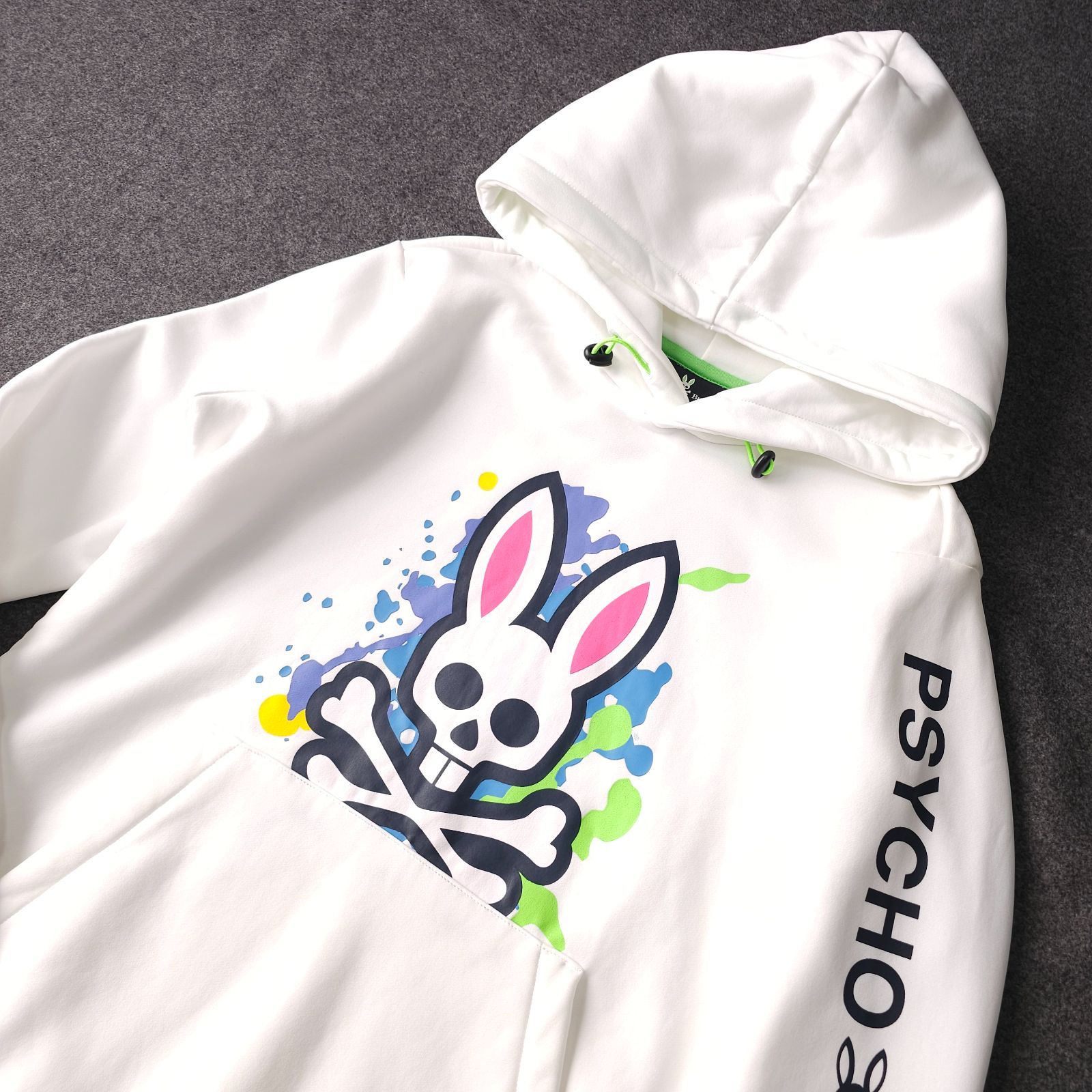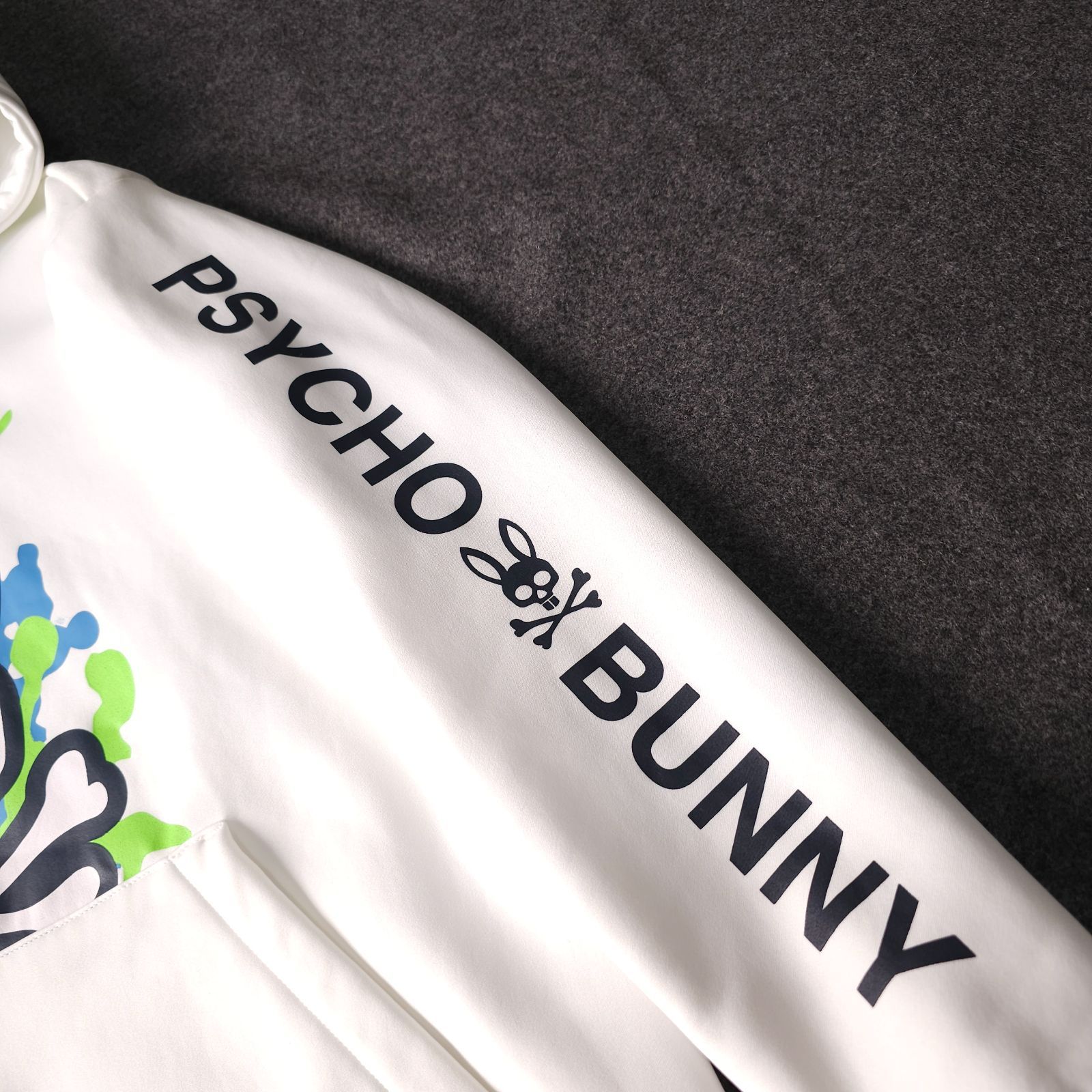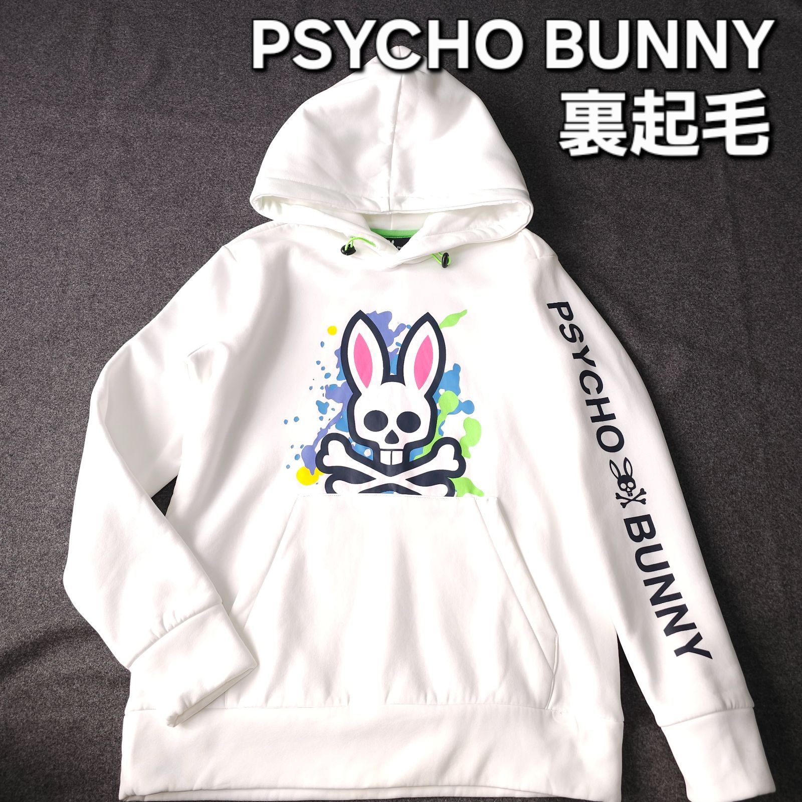 【Psycho Bunny】サイコバニー 秋冬 ダンボール素材 裏起毛 長袖ゴルフプルオーバーパーカー 1 M ロゴマーク レディース 白