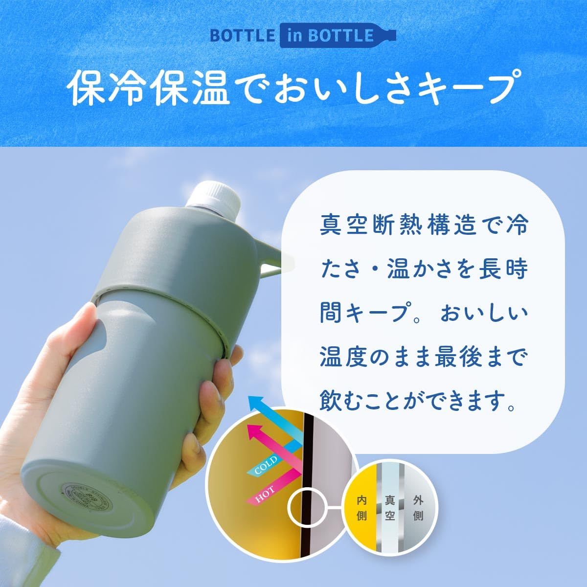 新品 アトラス ペットボトルホルダー 水筒 2個セット 保冷 ペットボトルクーラー 500ml 650ml 真空断熱 アイボリー ハンドル 取っ手付き ボトルインボトル ABIB-CIV2P