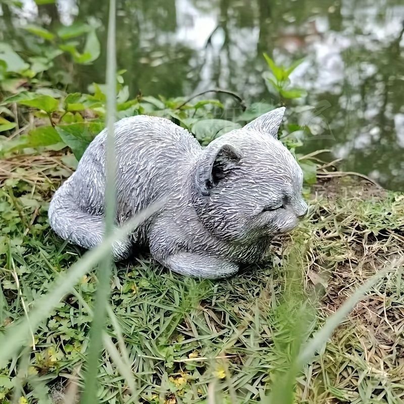 置物 オブジェ ガーデンオーナメント ネコ 猫 キャット グレー リアル 室内 屋外 インテリア 玄関 リビング ダイニング 装飾 庭 ガーデニング 装飾 ガーデン 樹脂 可愛い ギフト インテリア用品 贈り物 雑貨