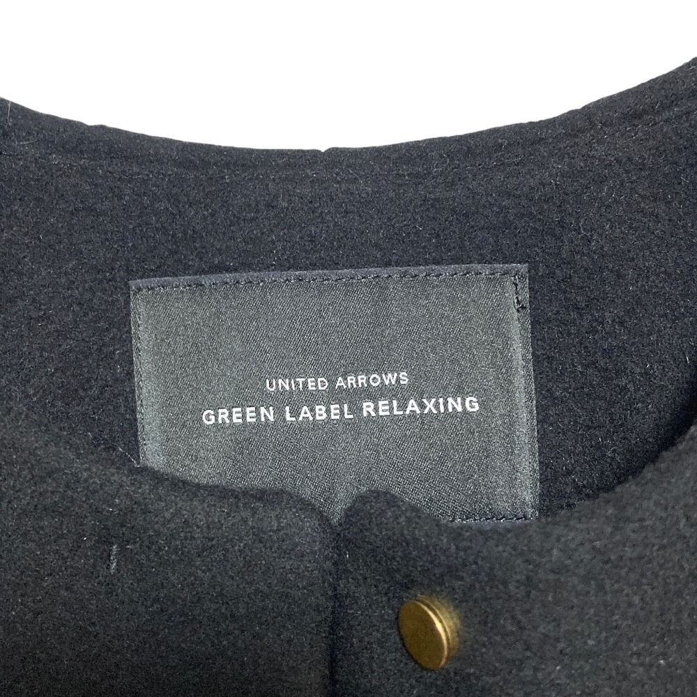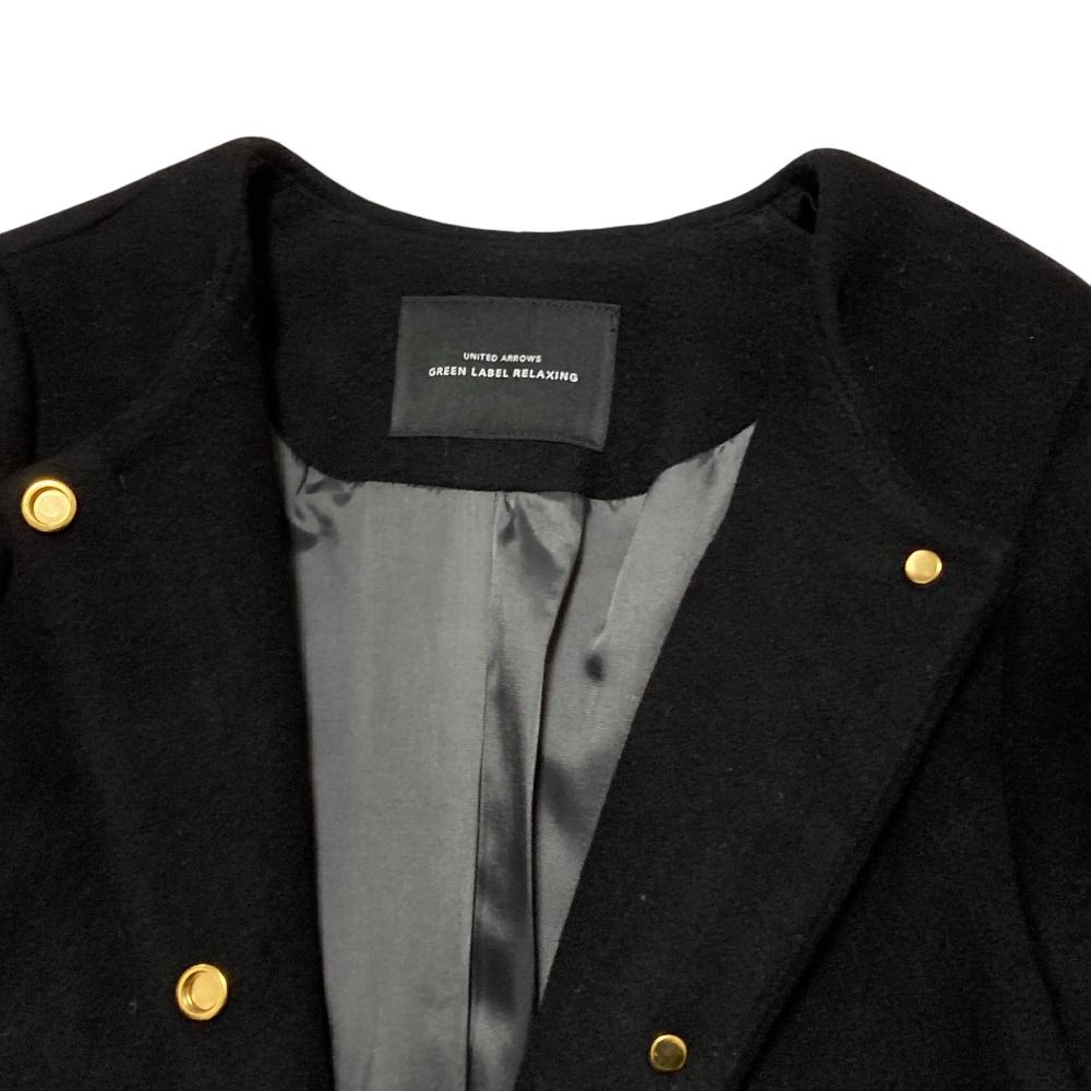 美品 green label relaxing グリーンレーベルリラクシング ユナイテッドアローズ ノーカラーウールコート サイズ36 ブラック レディース 古着 中古 USED