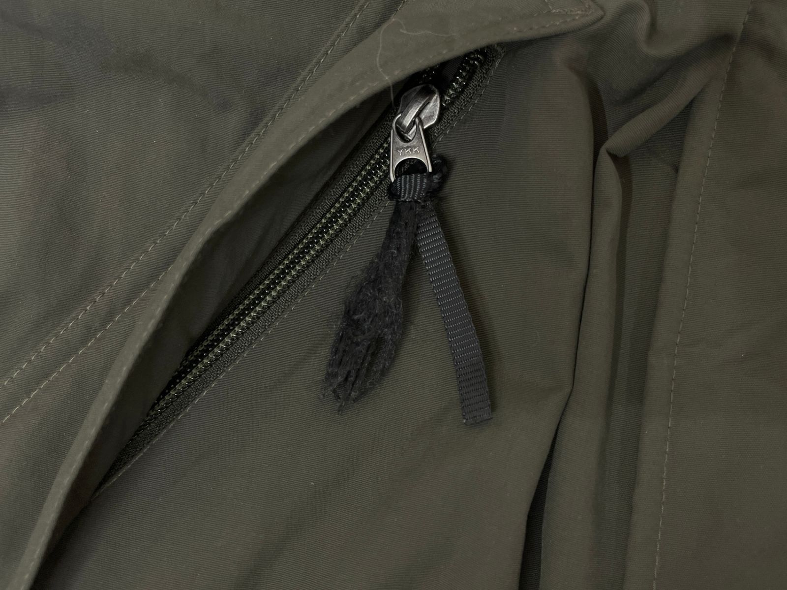 全体に少しのシワによる使用感があり、右ポケットのジッパータブにダメージがございます。