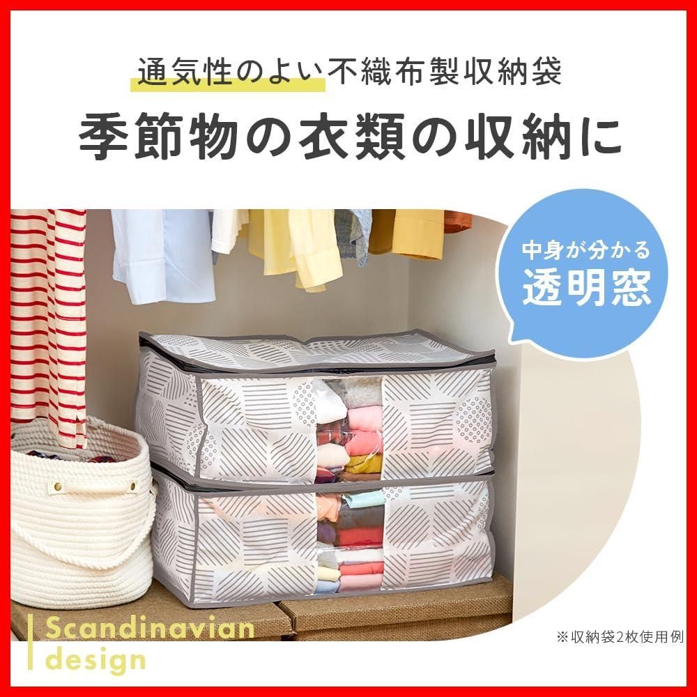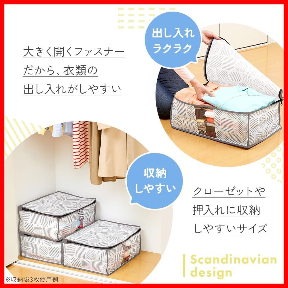 アイメディア(Aimedia) 衣類収納袋 衣類収納ケース 衣類用 収納袋 収納ケース 衣装ケース 収納ボックス 衣替え 洋服 収納 北欧柄 不織布 防塵 通気性 透明窓付き コンパクト 軽量 押入れ クローゼット おしゃれ
