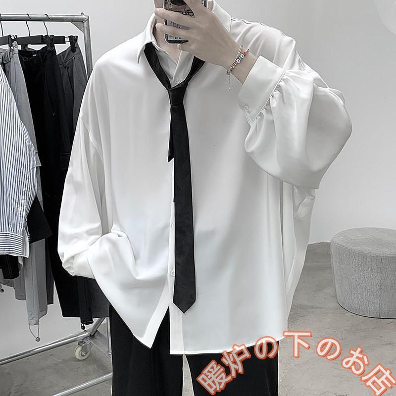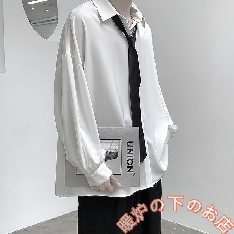 カジュアルシャツ メンズ 長袖シャツ 韓国ファッション 長袖 ネクタイ付き ゆったり 無地 白シャツ おしゃれ 春夏秋39678