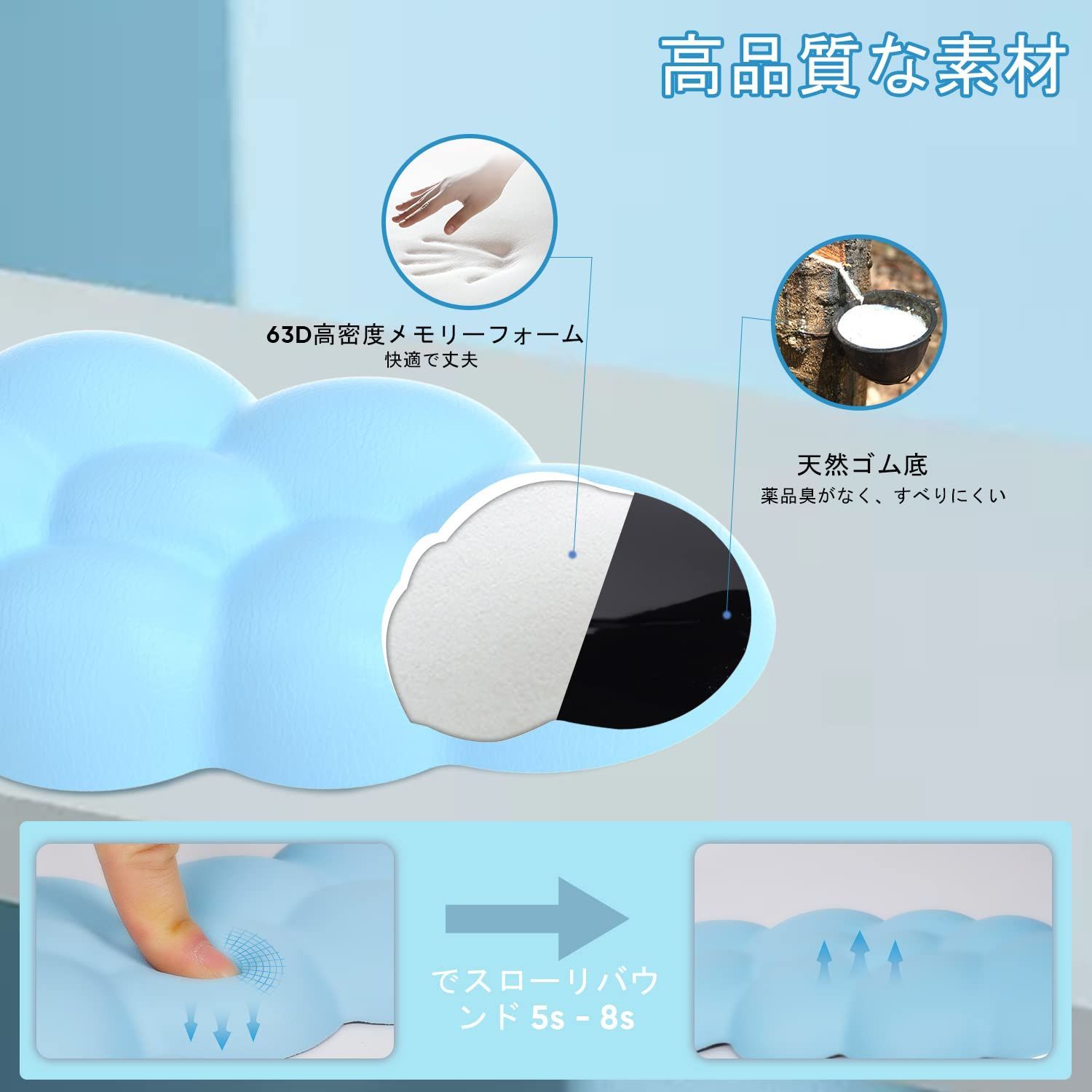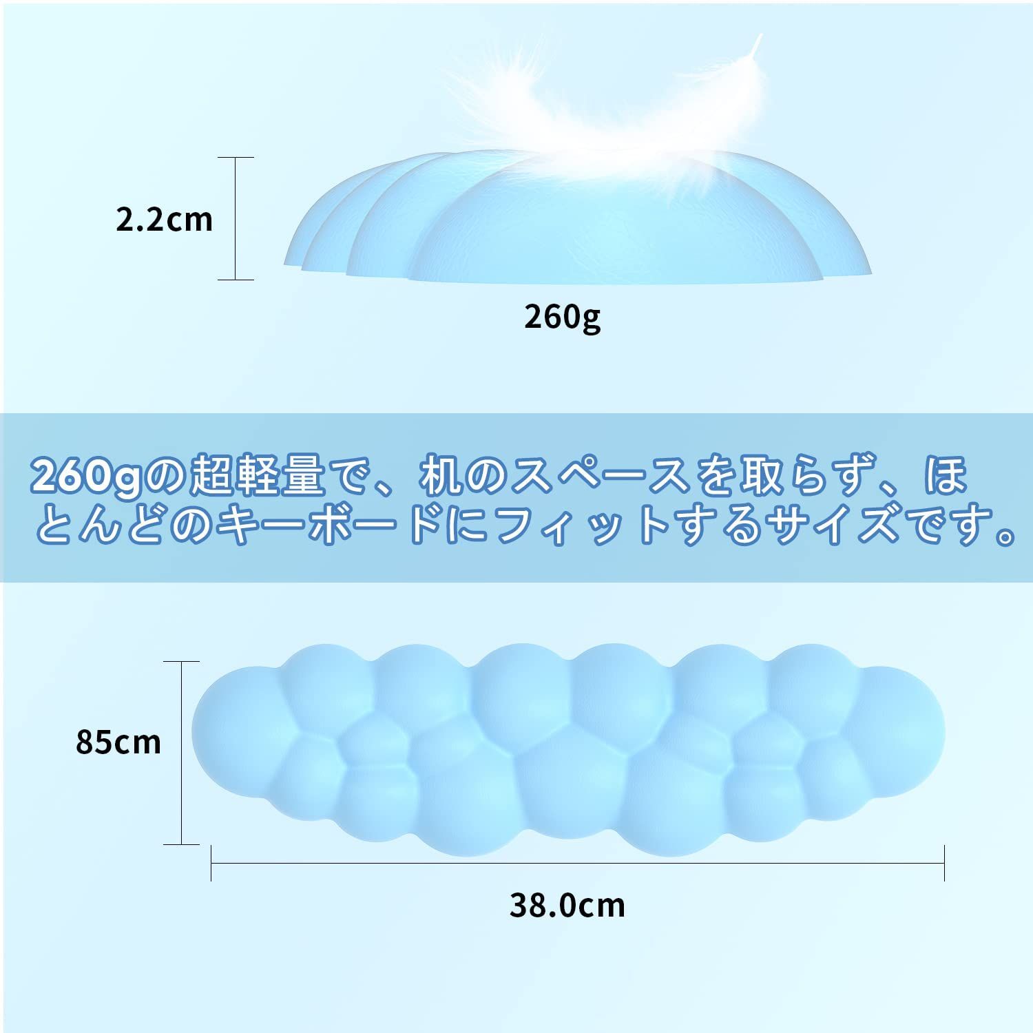 キーボードリストレスト 白 パソコンアームレスト クラウドハンドレスト 手首 クッション 雲状パームレスト 疲労を軽減 柔らかい素材 人間工学に基づいた かわいいデスク/Mac/コンピューターゲーム/ラップトップに適しています (雲状-ライトブルー)