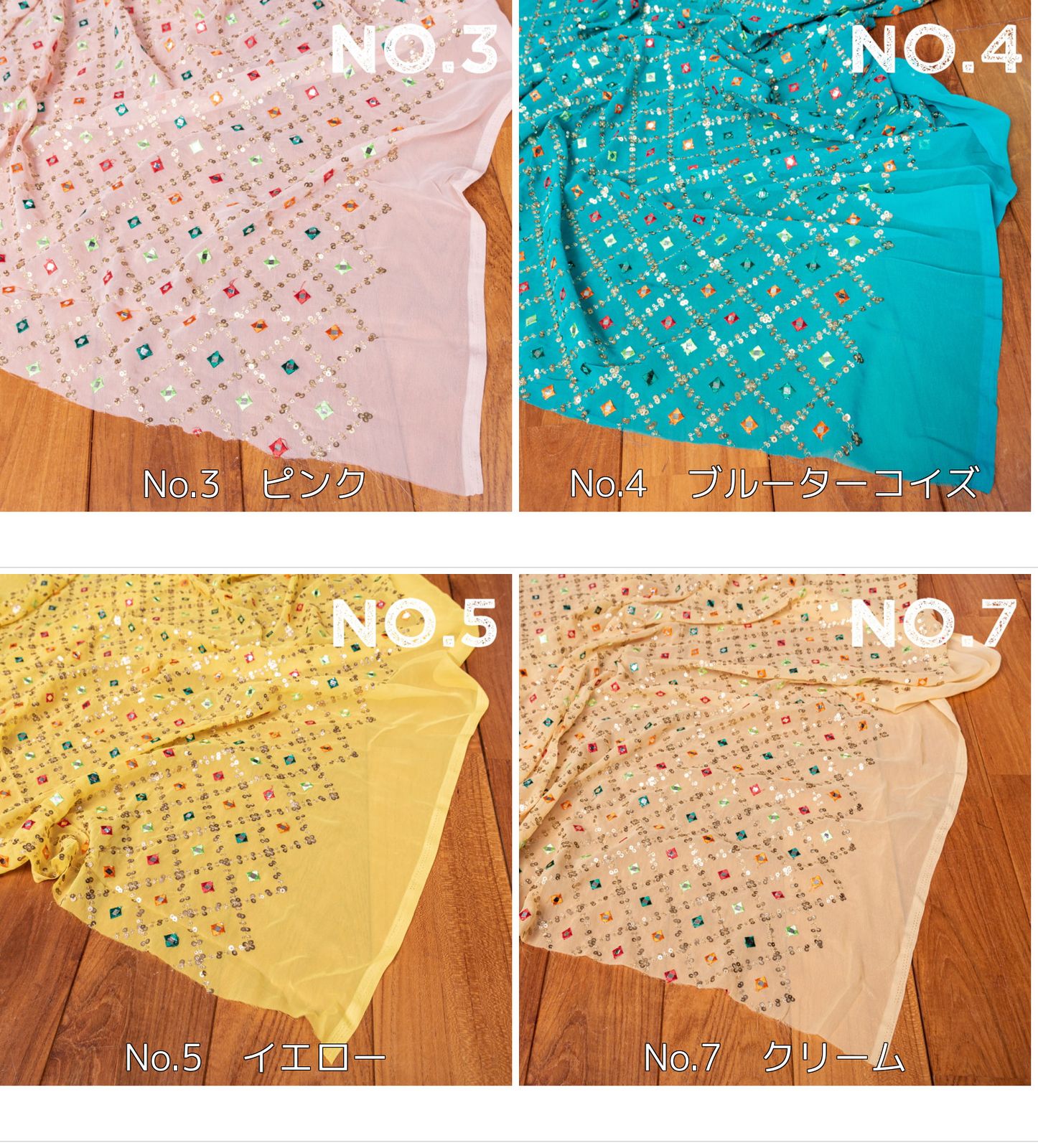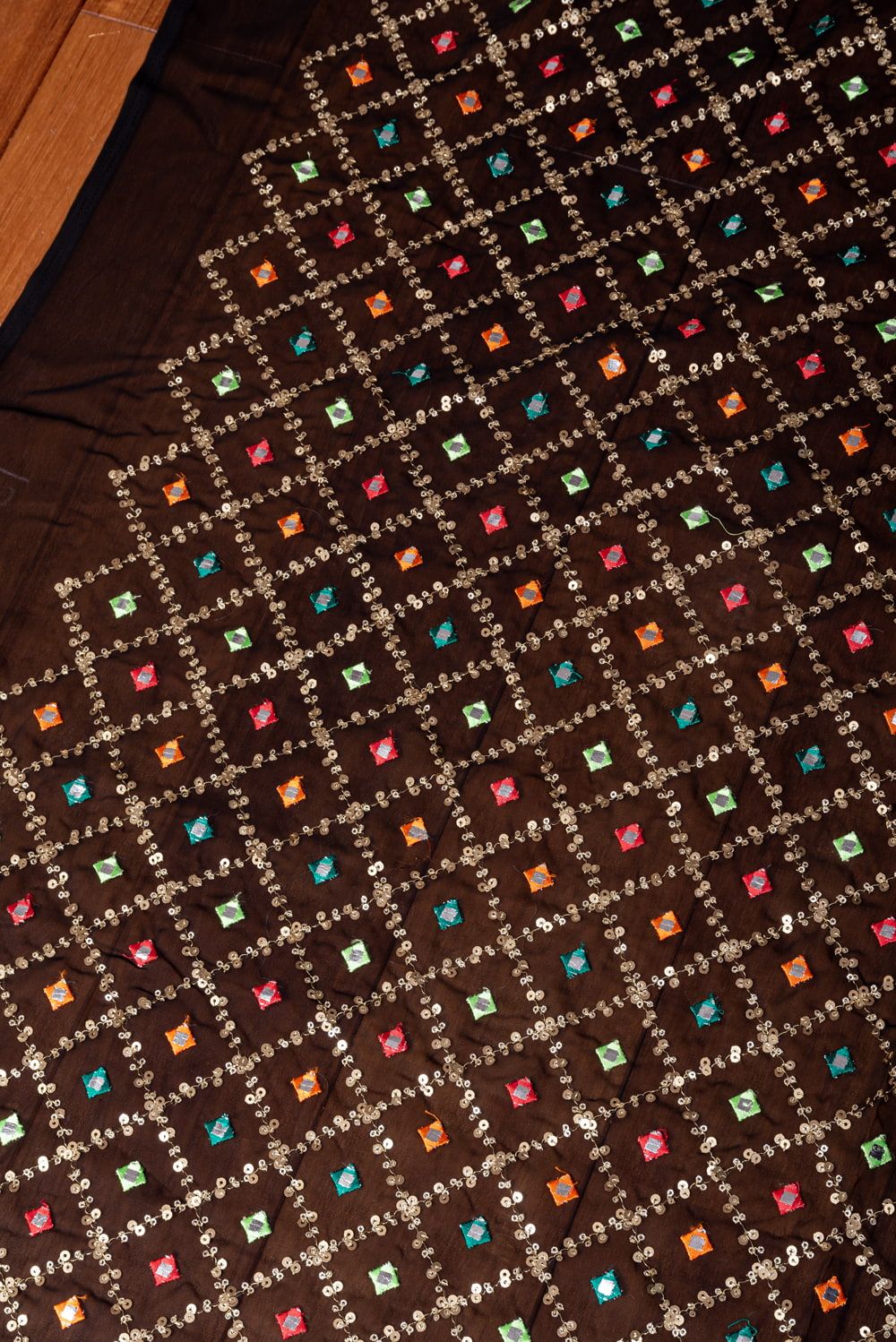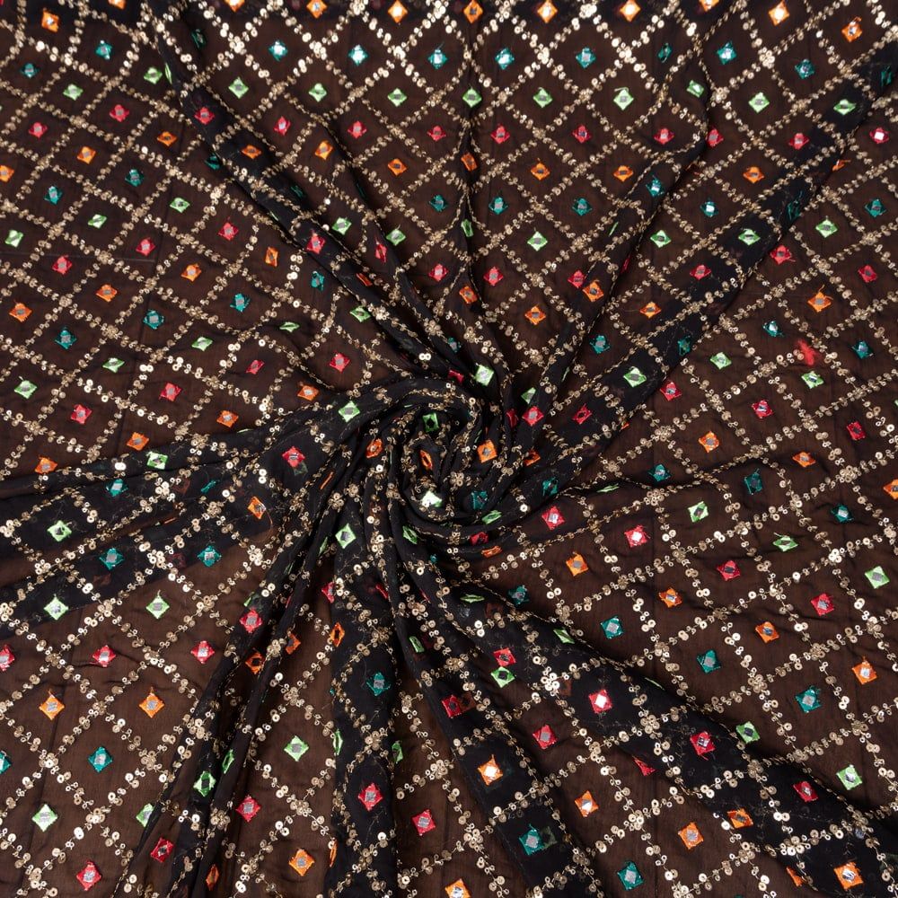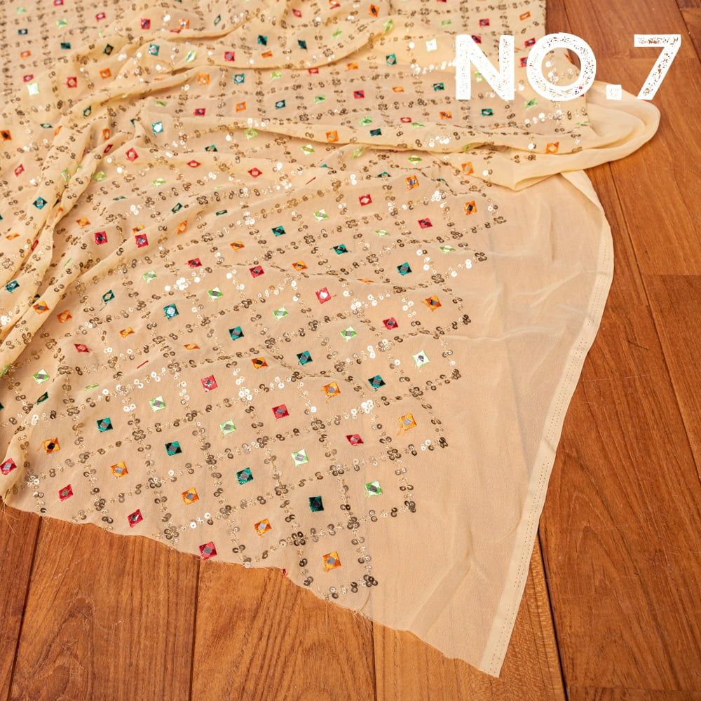 インドからやってきたシンプルだけどありそうでない、メッシュ生地の布です。スパンコールや刺繍など、インドらしい輝く装飾が施されていて、光を受けると華やかな雰囲気に。