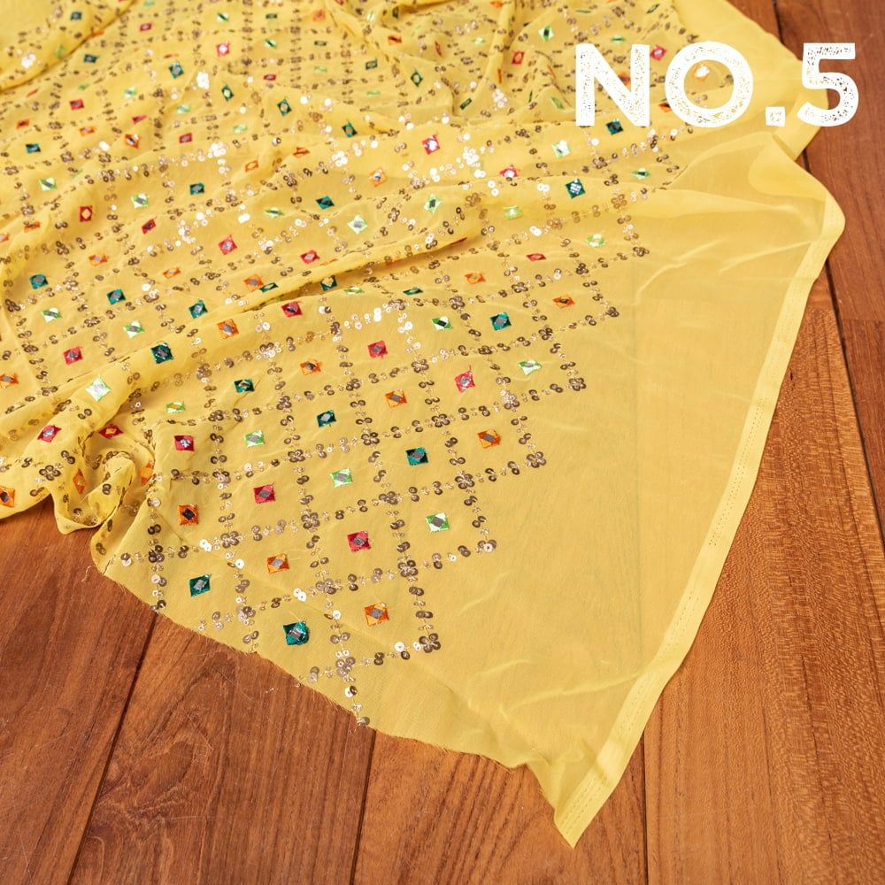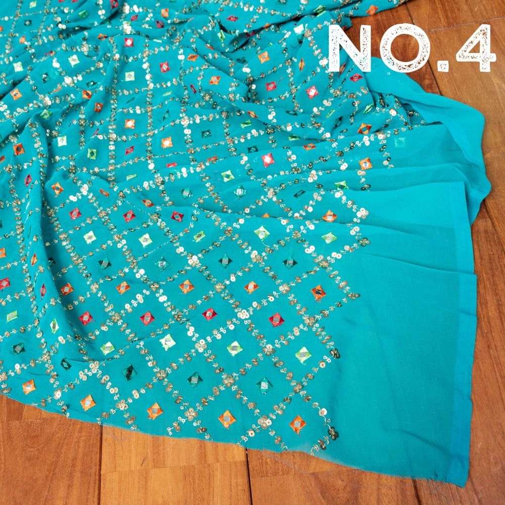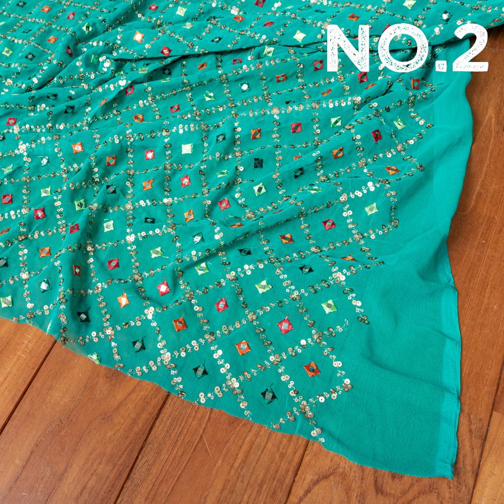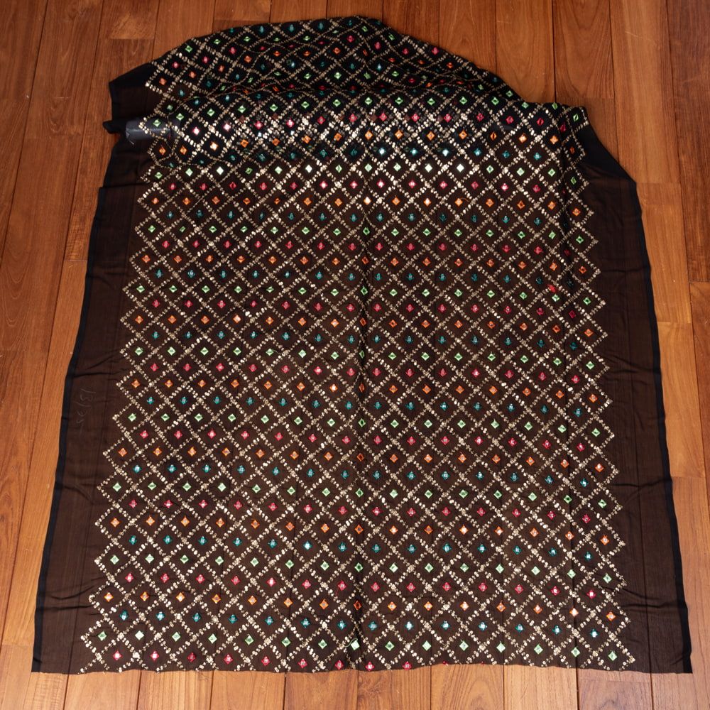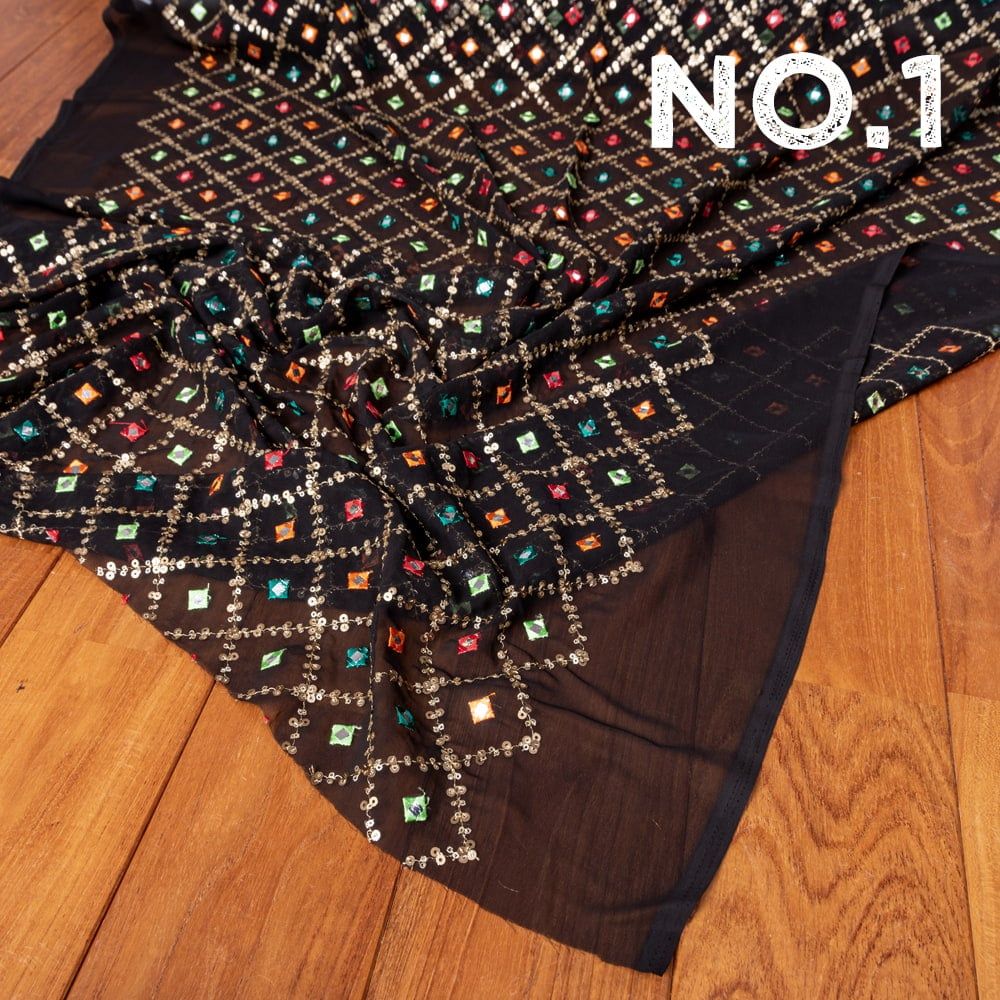 インドからやってきたシンプルだけどありそうでない、メッシュ生地の布です。スパンコールや刺繍など、インドらしい輝く装飾が施されていて、光を受けると華やかな雰囲気に。