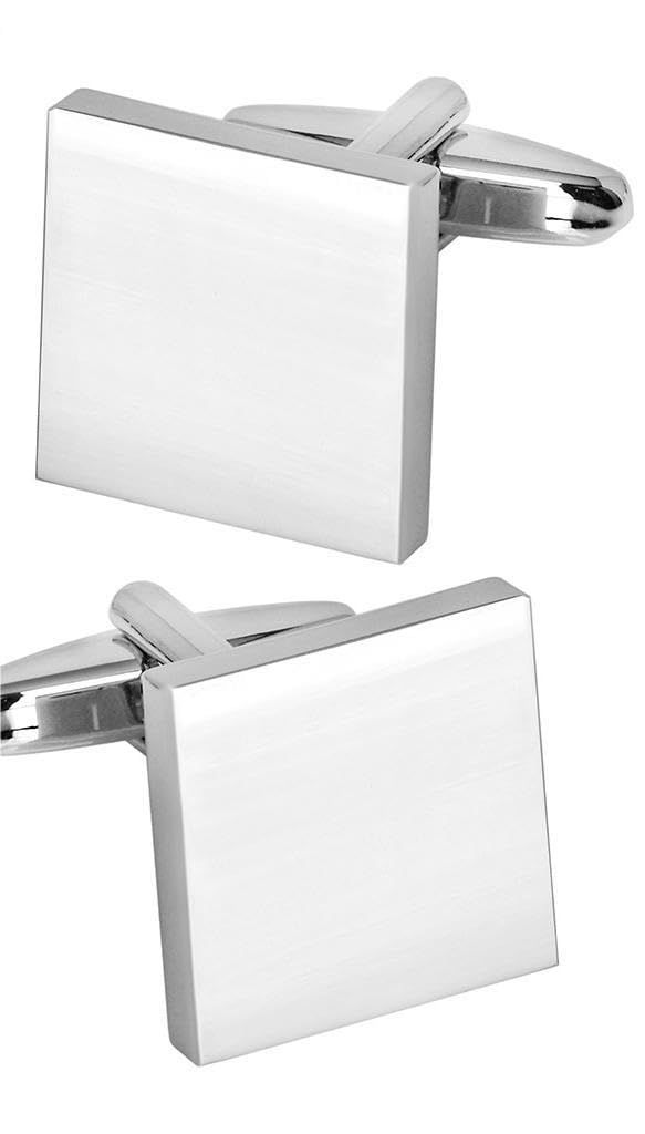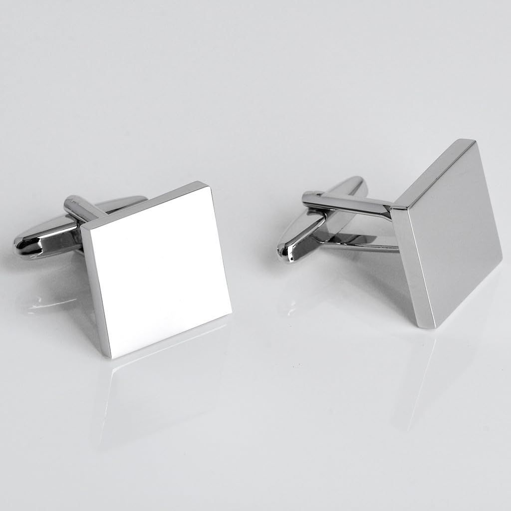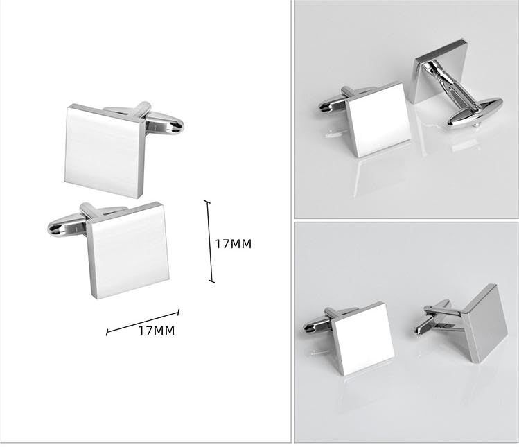 【新着商品】アクセサリー スーツ ビジネス 光沢 シンプル 17mm スクエア シルバー メンズ カフスボタン