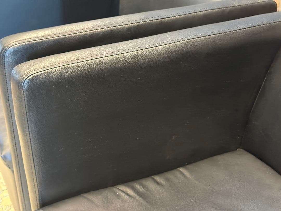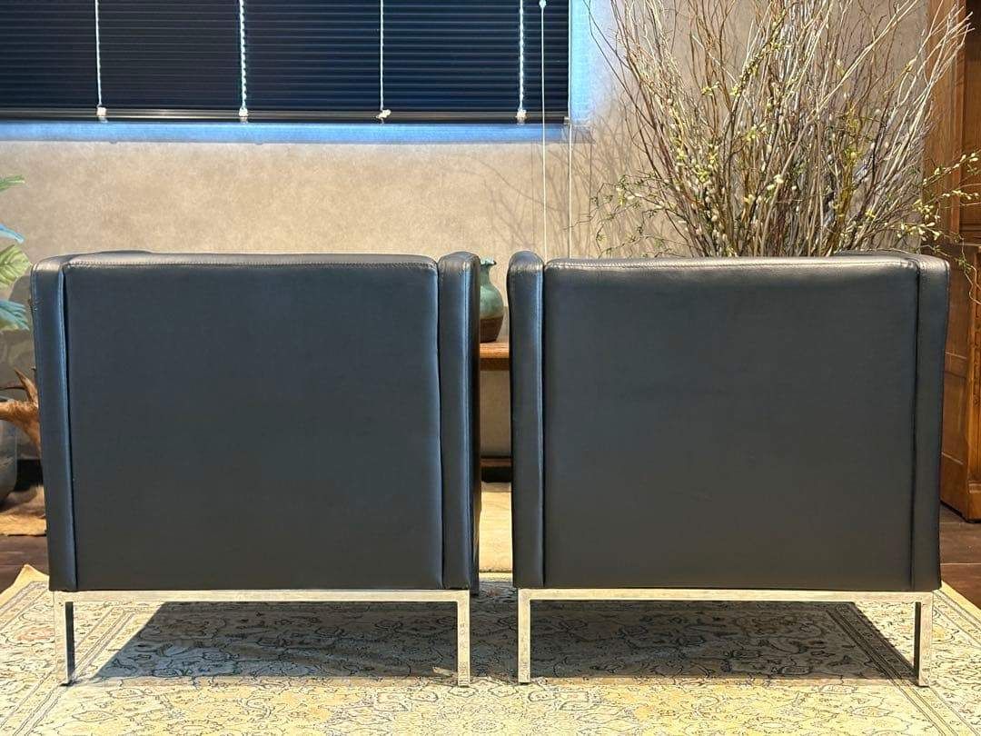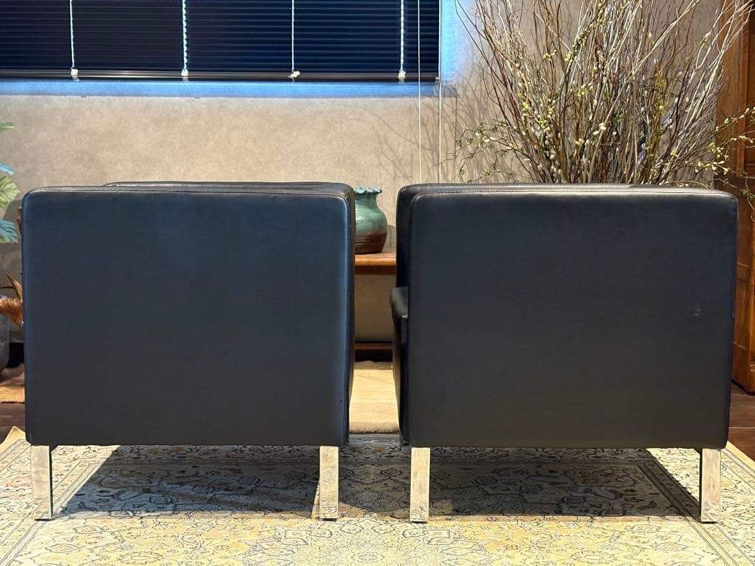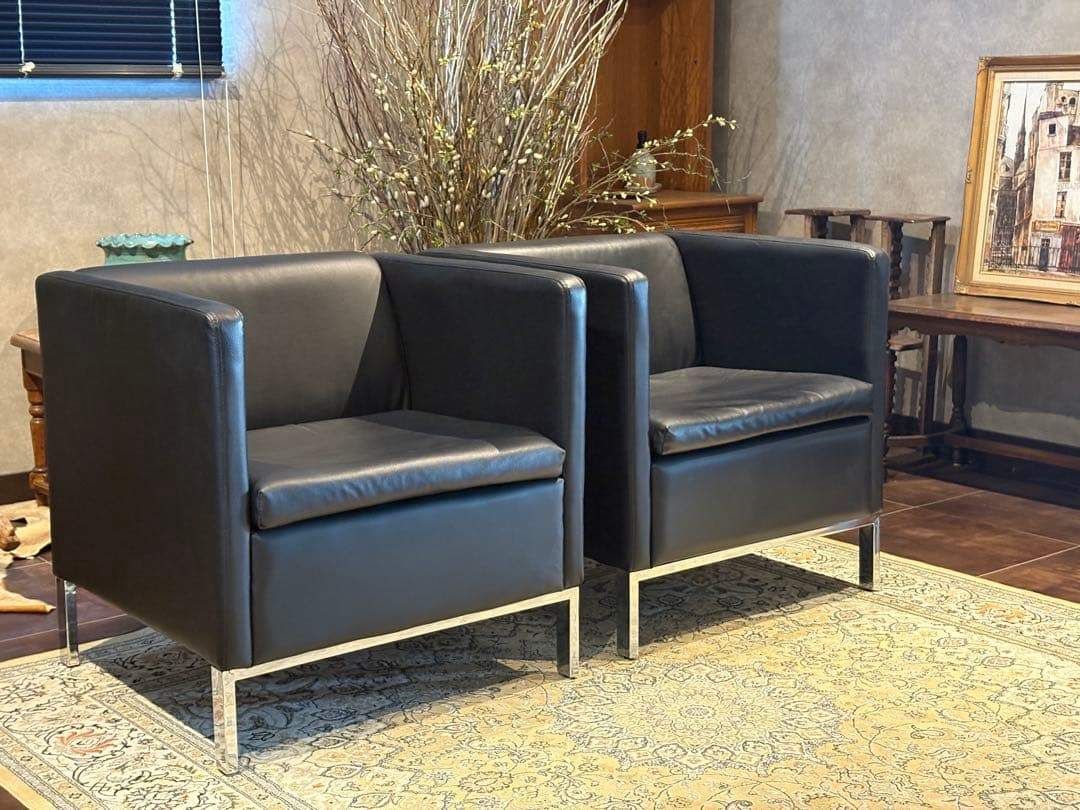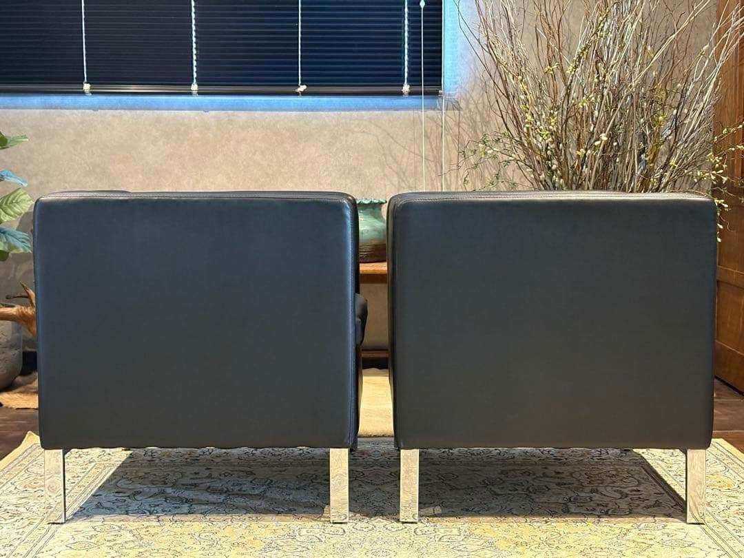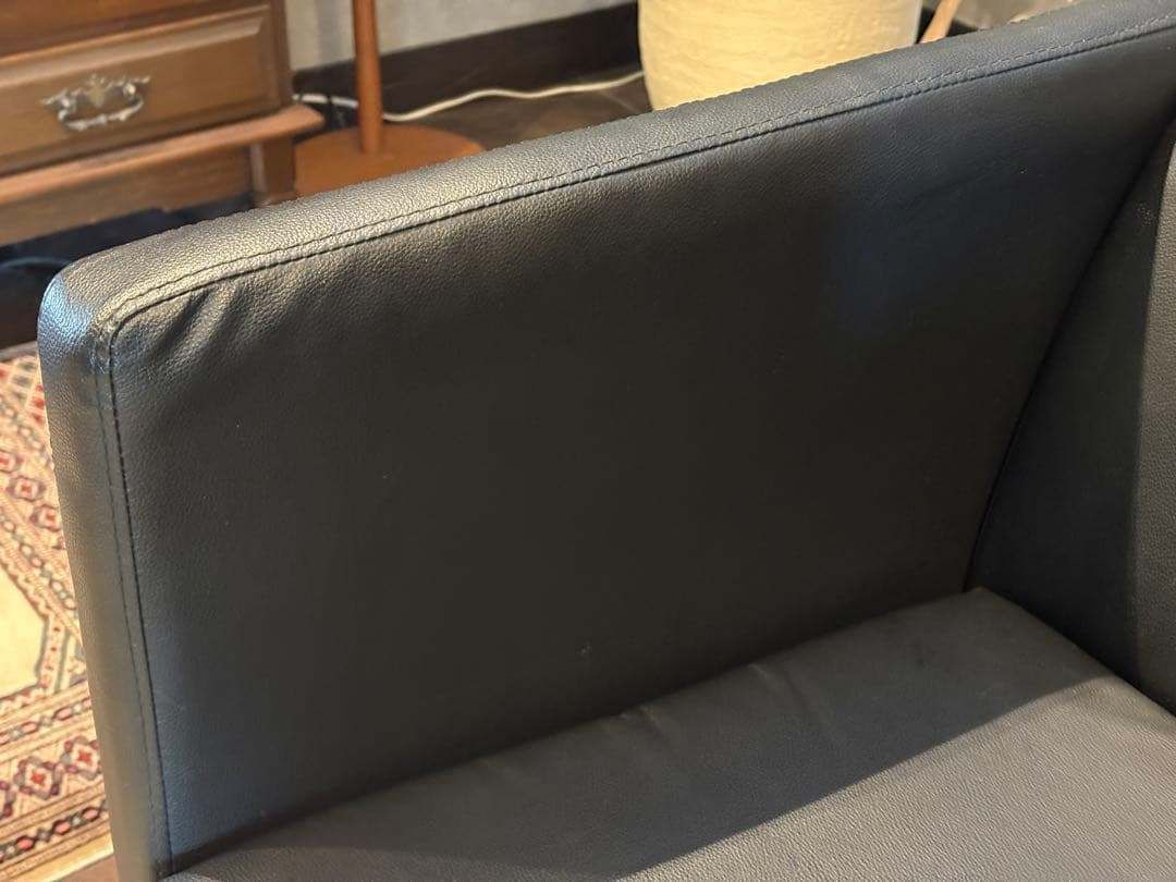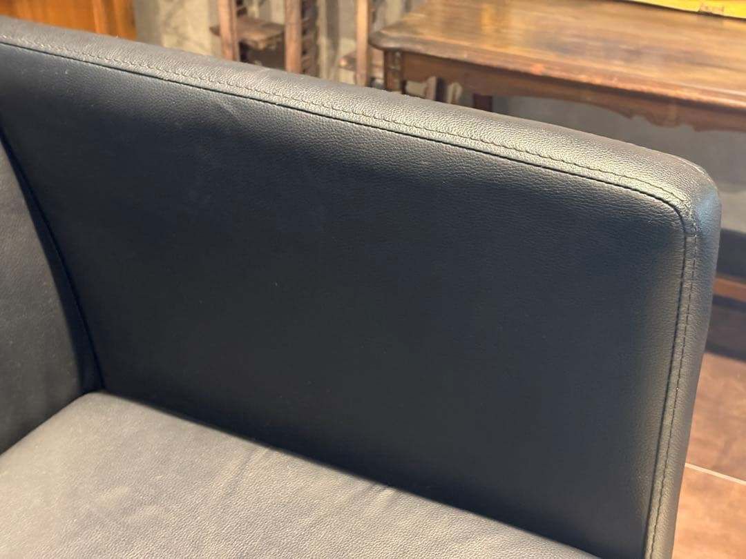 SF00104,SF00105 ※2脚セットです ❐ITEM INTRODUCTION 商品紹介❒ スタイリッシュな空間づくりにぴったりな、 ブラックの1人掛けソファ(1Pソファ)です。 シンプルで無駄のないフォルムに、シャープなメタルレッグを組み合わせたモダンデザインが魅力。 合皮レザーはお手入れがしやすく、 程よい光沢感が高級感を演出します。 クッション性もあり、見た目だけでなく快適な座り心地。 リビング、オフィス、エントランス、ショップディスプレイなど、幅広いシーンで活躍します。 モノトーン・スタイリッシュ・ミニマルなインテリアとも好相性の一脚です。 ※脚のアジャスターで高さの調整が可能です。 ❐サイズ約❐ 横幅71 奥行67 高さ70 座面まで43 ❐caution 注意事項❐ ◻︎アンティーク ヴィンテージ品について 当店のアンティーク・ヴィンテージ商品には、時間の経過による特性があります。 これらの商品は、新品と異なり、年月を経た独特の風合いがございます。 小傷や色あせ、使用感があることをご理解ください。 同じデザインでも個体差があります。これらはその商品の「個性」としてお楽しみいただけます。。 ご購入前には商品の状態を十分にご確認ください。 アンティーク・ヴィンテージの魅力は、完璧ではないが故の美しさです。 ご理解の上、ご検討いただければ幸いです。 ご質問があればお気軽にお問い合わせください。 ◻︎発送 ご注文確認後、原則土日祝を除く2~3日以内に発送させていただきますが、タイミングによっては多くの方からご購入いただきまして、発送業務に遅れが出る場合がございます。 また離島への配送は中継料が別途2500円発生いたしますので、離島へお住まいの方はご購入前にコメントやお問い合わせからご連絡くださいませ。 ◻︎サポート 商品到着後のトラブルにも迅速に対応いたします。 受け取り評価前にご連絡くださいませ。 ご不明点、ご質問がございましたら、何でもお聞きください。 お悩みなことは全力でサポート致します。 「時を受継ぐ」をコンセプトに当店のアイテムで少しでも彩り豊かになれば幸いでございます ♯検索タグ 1人掛けソファ 1Pソファ シングルソファ パーソナルソファ 合皮レザー モダン ブラックインテリア ミニマル メタルレッグ スタイリッシュ シンプルデザイン ヴィンテージ インテリア家具