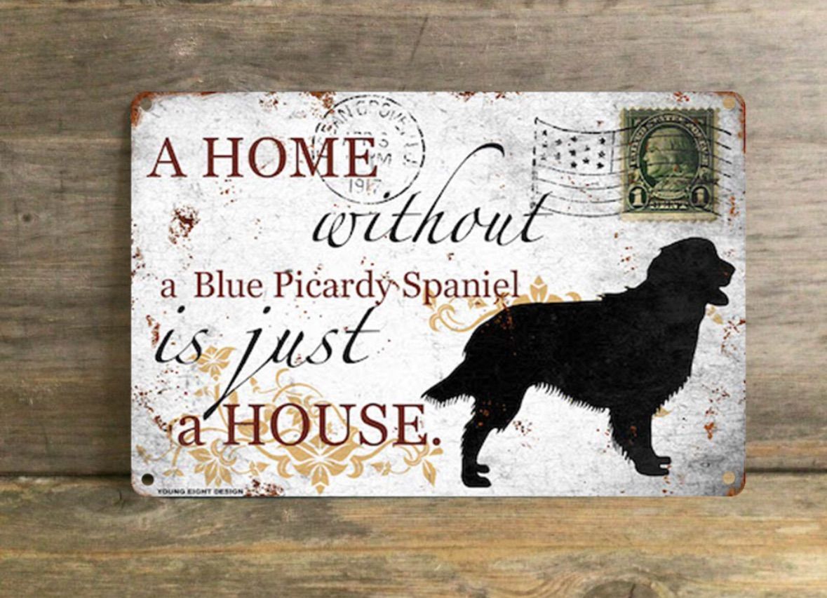 【Blue Picardy Spaniel/ブルー・ピカルディー・スパニエル】 メタルプレート メッセージ 犬 雑貨 グッズ アート ポスター おしゃれ インテリア 壁飾り アンティーク風 74