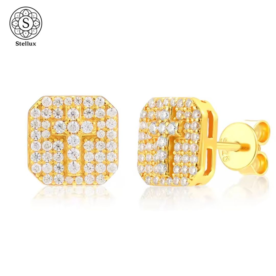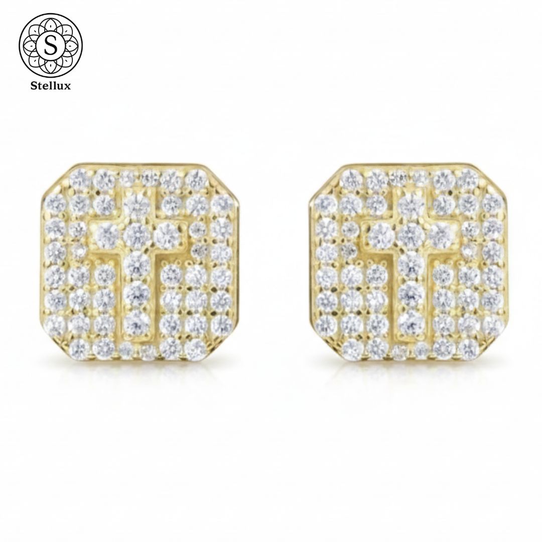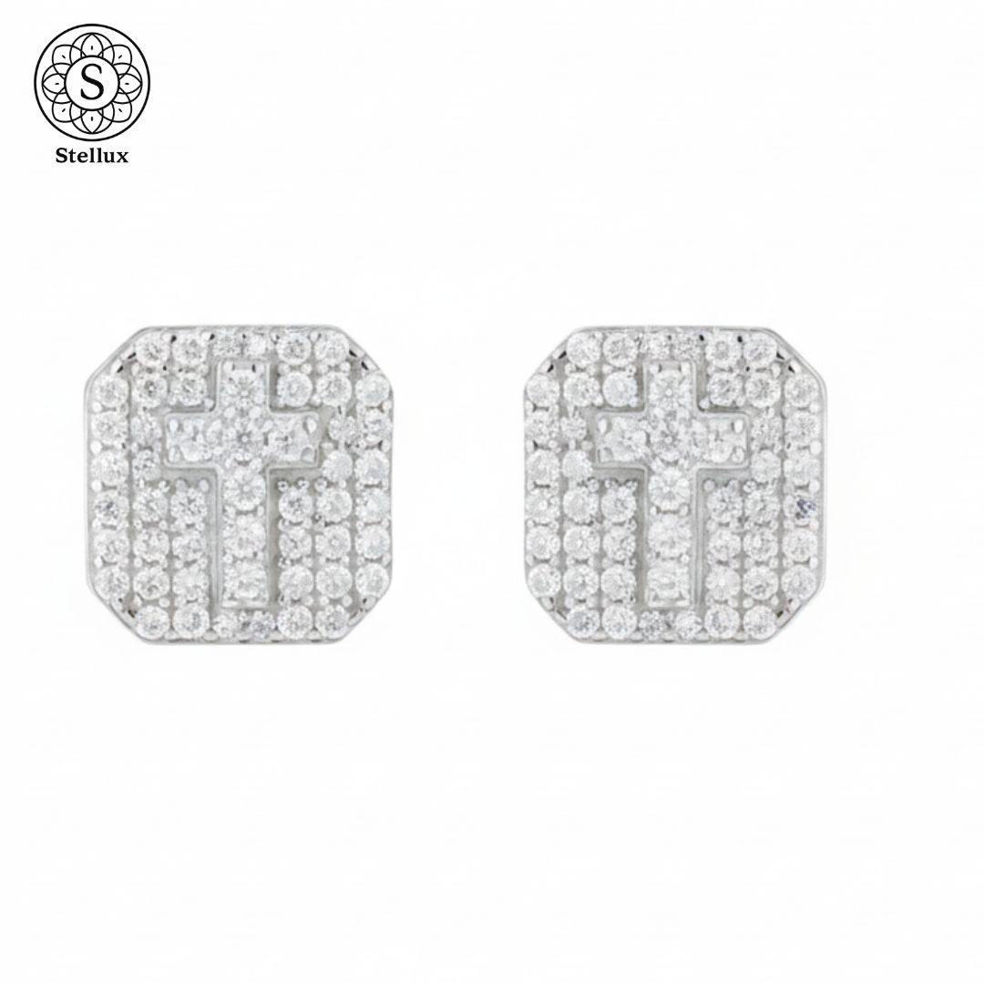 ・モアサナイトを敷き詰めたフレームが、センターのクロスを額縁のように引き立て、耳元に“ジュエリーの塊”のような迫力をつくります。