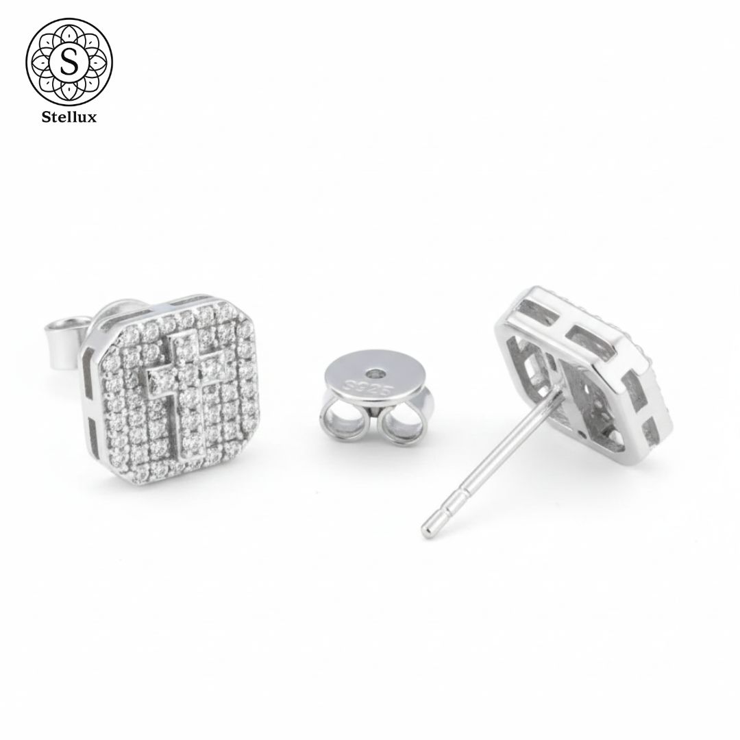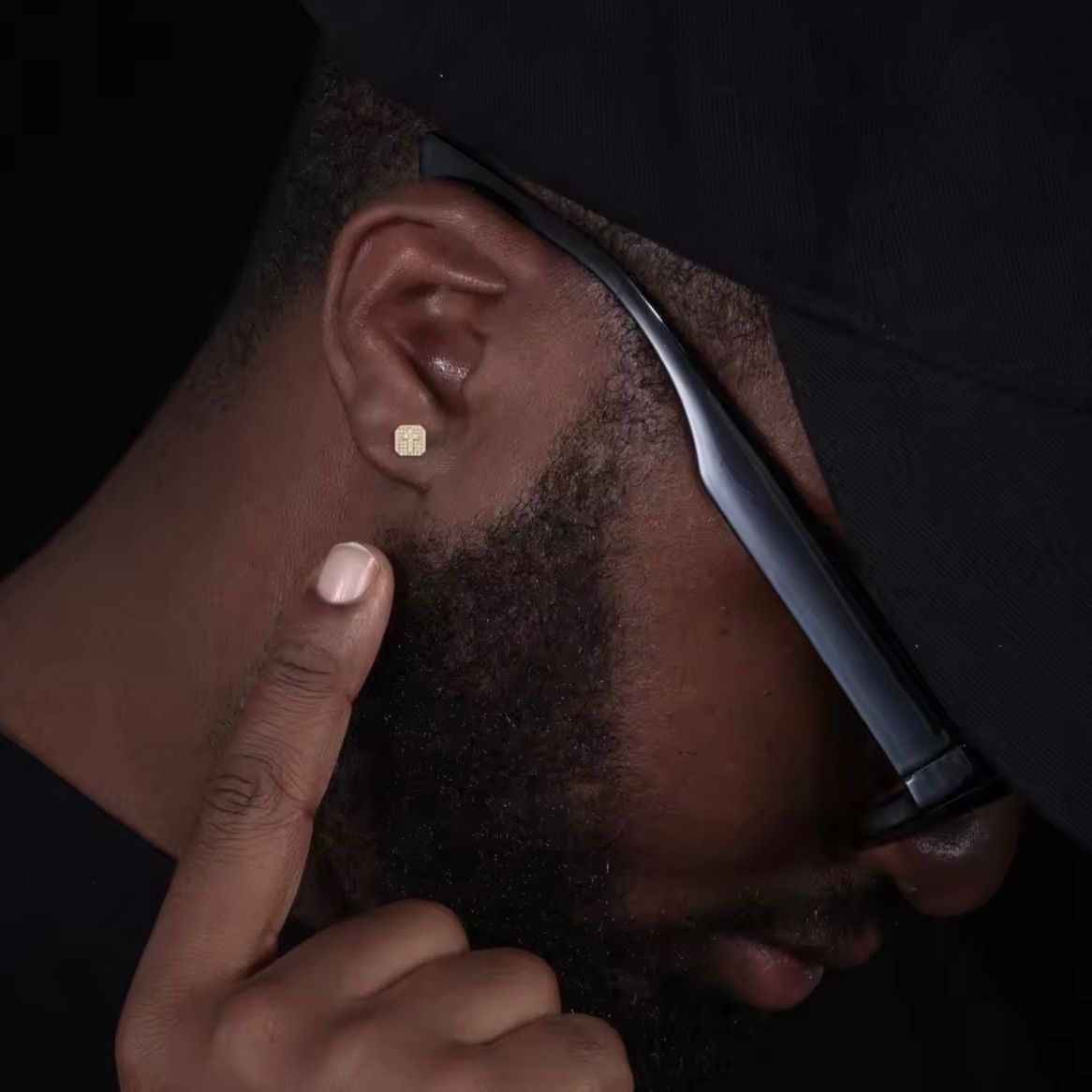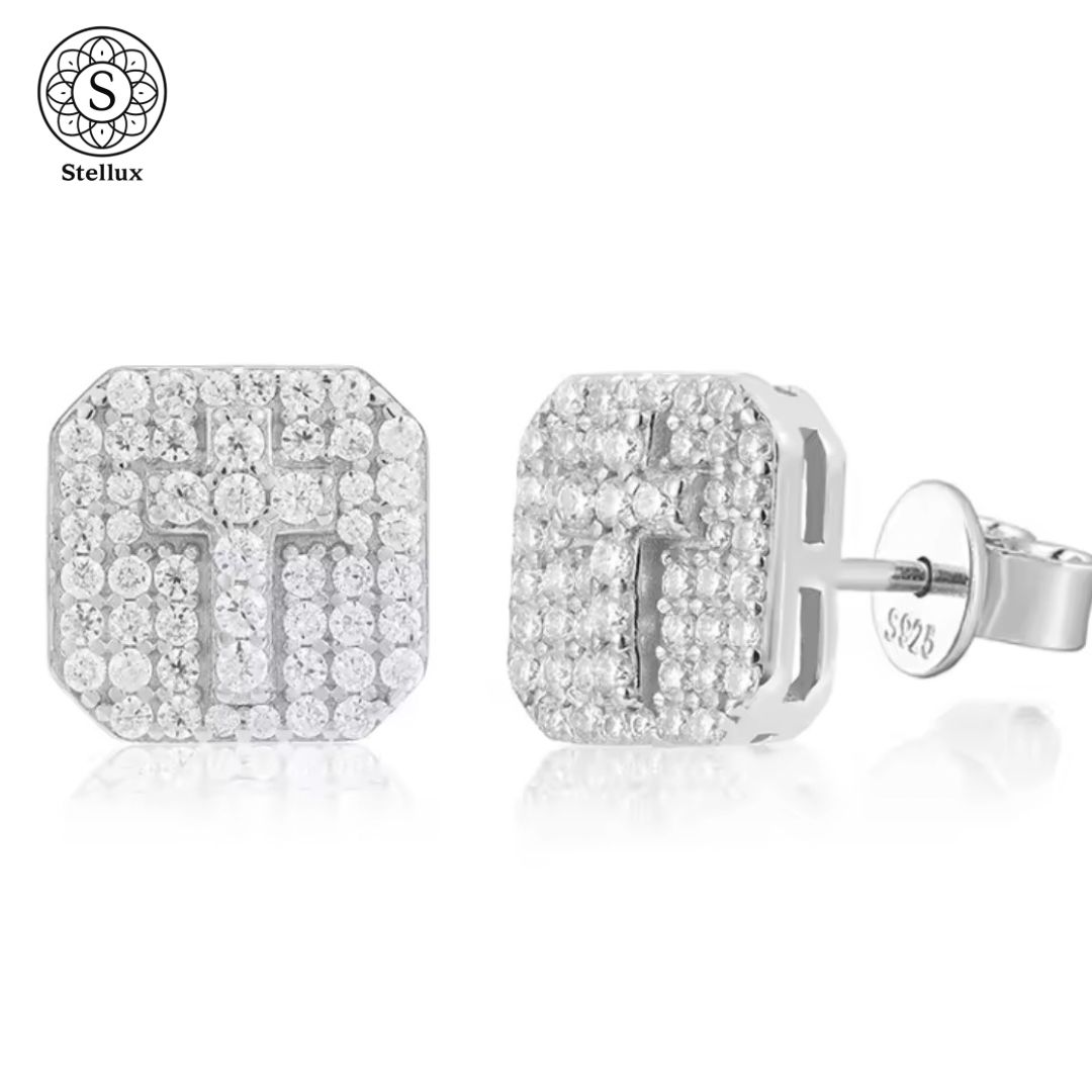 一粒ずつ精密に並べたストーンが、耳たぶの上で“光の十字架”を描くように設計されており、顔を少し動かすだけで、スタジオ照明のようなきらめきが走ります。