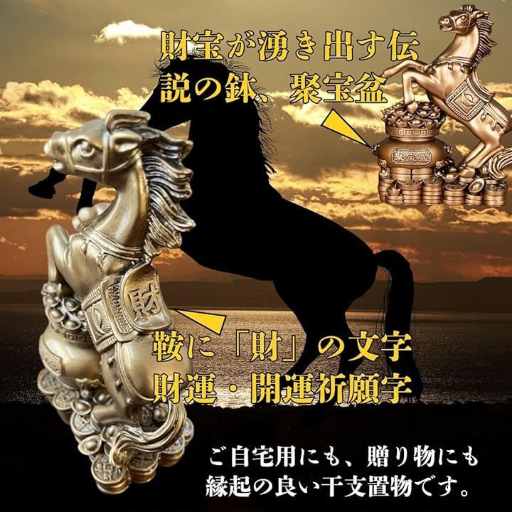 「開運ギフト」「財」文字が馬鞍に描かれており、たくさんの金貨の上にのった馬を表しており、財運アップを祈願する装飾品でもあります。