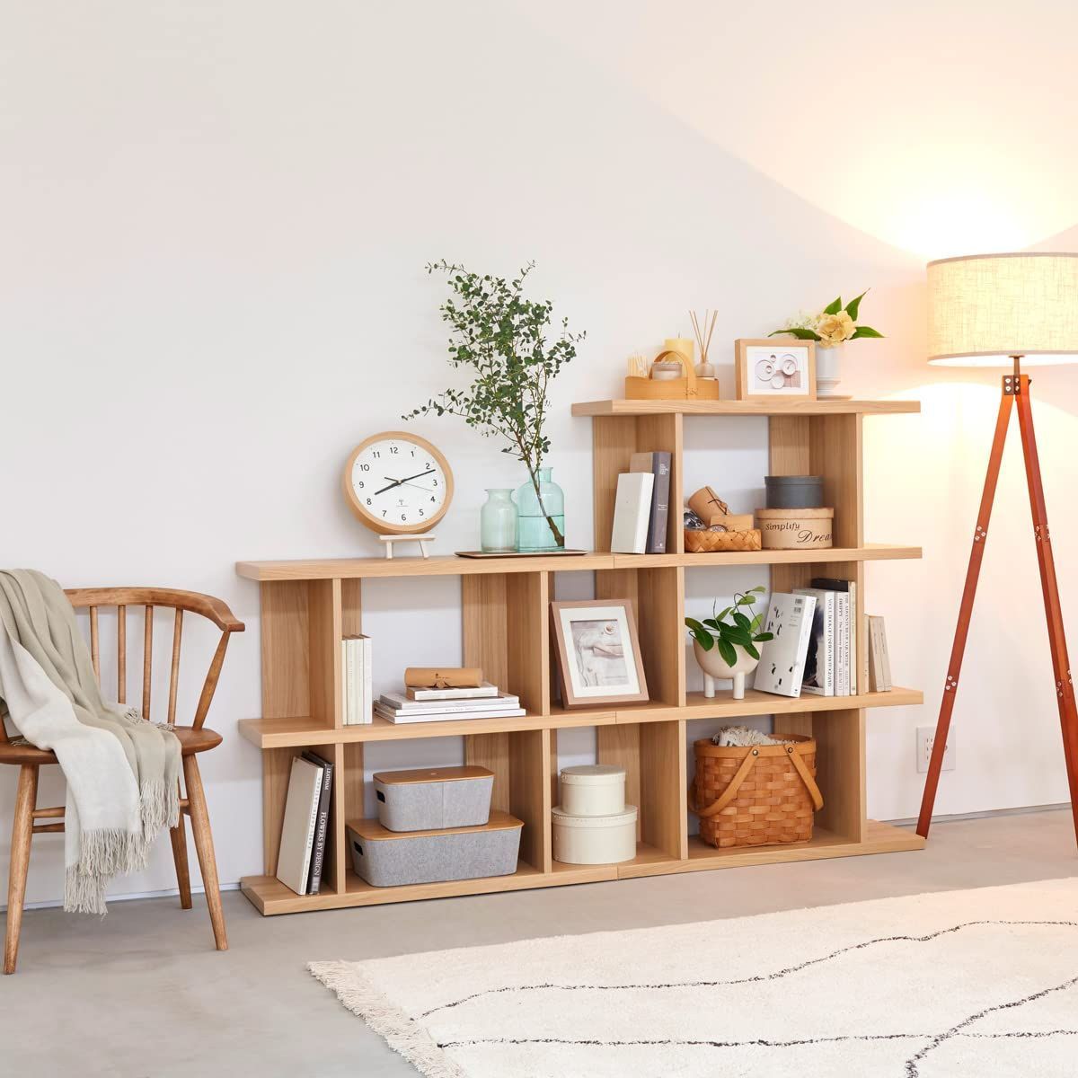 組合わせて横に並べて使える シェルフ「セルオリア SO1-7580 NA」。厚さ3cmの板厚がボリューム感を感じさせるディスプレイラックです。