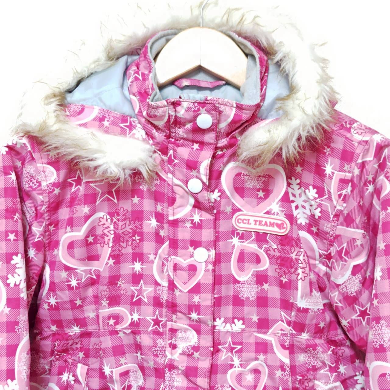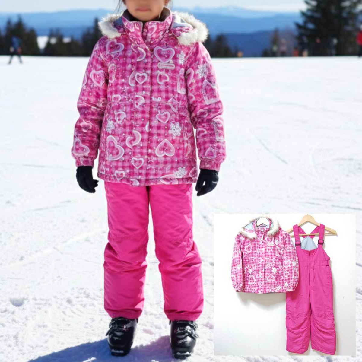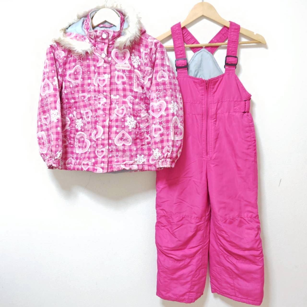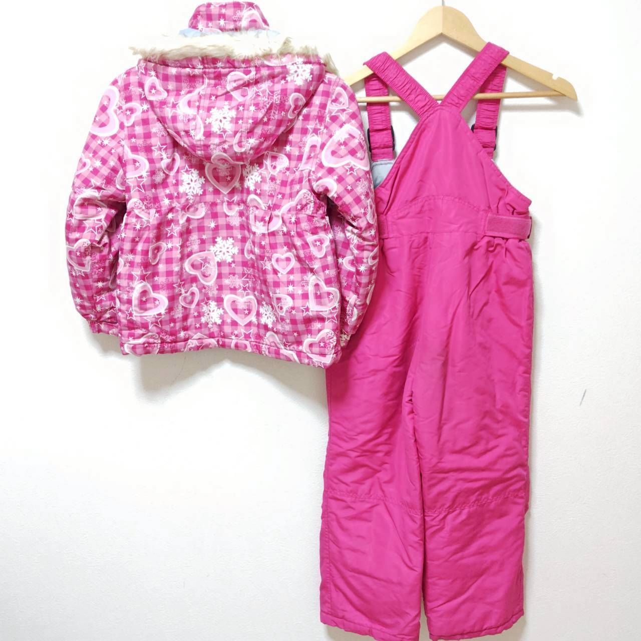2点セット◎【CCL TEAM】シーシーエル チーム スキー ウェア 上下セット ジャケット アウター ジャンパー パンツ オーバーオール スノーボード スノボ アウトドア ウィンター スポーツ ハート ピンク キッズ サイズ 130 /M40385ja