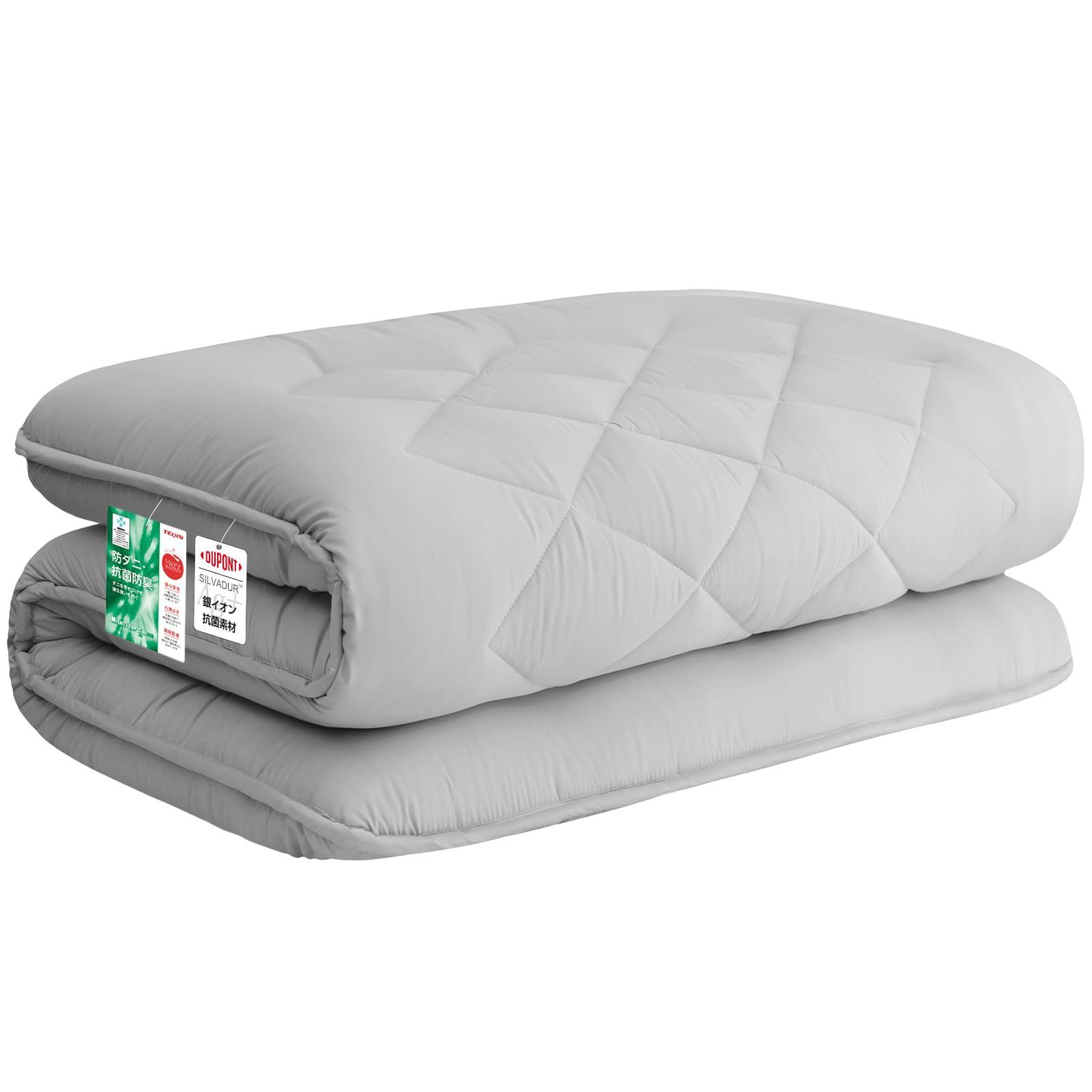 ご覧いただきありがとうございます。 当店では他サイトにも商品を販売しているため まれに売り切れや取り寄せ中となる場合がありますがご了承ください。 敷き布団 極厚10cm 五層構造 セミダブル 【TEIJIN マイティトップ中綿使用】抗菌・防臭・防カビ・防ダニ・吸汗・速乾 しきふとん ウレタン入り 高級 折り目なし 敷布団 しっかり支える 三つ折り 体圧分散 ホコリが出にくい ピーチスキン加工 やわらかな肌触り [圧縮なしタイプ 極厚] 120×210cm,グレー 色: グレー_サイズ: セミダブル ??①商品サイズ:幅約120cm×奥行約210cm×高さ約10cm(ウレタンフォーム5cm入り)②商品重量:約5.5kg③材質/表地:ポリエステル100%(ピーチスキン加工)④中綿:中空ポリエステル100%(TEIJIN マイティトップ中綿使用) 【心地よい肌触り・五層式敷布団】両面の表層はふわふわの中綿で、寝心地も抜群です。不織布は中棉とウレタンを分離し、中棉の形状を維持しやすく、つぶれず、耐久性があります。約5cmのウレタンが体を効果的に支え、敷き布団が崩れにくいです。ウレタンが入っていることで、全身をバランスよく支え、S字の寝姿勢を保ってくれ、快適に眠るとこができます。 【極厚10cmのボリュームで寝心地もしっかり!】寝心地を左右する敷布団の中材には体圧分散性に優れた高反発ウレタンをチューニング、ふんわりやわらかな寝心地ながらもしっかりとサポート、寝返りもうちやすく、身体が沈み込みすぎることなくサポート性と寝心地のバランスが取れた敷布団です。 【マイクロファイバー中綿】中綿にはふわふわ極細ポリエステル繊維を使用しているため従来の中綿製品に比べ、柔らかくて軽くふわっと仕上がっています。中綿は防ダニ・抗菌・防臭効果のある帝人の「マイティトップ」を使用します。「マイティトップ」の抗菌防臭効果で汗の臭いや細菌の繁殖を抑える、清潔感を保ちます。 【つくりたてをお届け!ノン圧縮】圧縮していないので、すぐにお使いいただけます。つくりたてのお敷布団ならではのふんわり感をぜひご堪能ください。極厚ボリュームでゆったり眠れる厚み約8~10cmの超極厚。ふっくらで床付き感のない極上の寝心地で、質の高い睡眠をサポートします。開梱した直後からおやすみいただけますが、およそ1~2日ほどで厚みや形状が復元します。開封時の室温・環境によって折り目がなくなるまでの時間に差が生じます。 【抗菌防臭・SEKマークを取得】SEK認証された優れた抗菌防臭効果で、細菌の増殖を抑え、防臭効果を発揮します。国際規格”ISO9001”認定工場で生産して、低ホルムアルデヒド、安全な品質です。 ????【注意事項】????ウレタン入りの敷布団!包装を開けた際に臭いがすることがありますが、これは正常な現象です。*気になる場合は、注文を控えてください。ウレタン特殊の臭いは正常ですので、包装を外して約1週間置いておくと臭いが発散されます。 ブランド Sねむりのサンショップ サイズ セミダブル 商品の寸法 2.1長さ x 1.2幅 x 0.1厚み m 商品の重量 5.9 キログラム 商品の硬さ 硬い レイヤー数 5 中身の素材 マイクロファイバー 特徴 ダニ対策, 抗菌 表示を増やす 最後までご確認頂き誠にありがとうございました。 上記をご確認頂き、ご購入いただけましたら幸いです。 何かご不明な点がございましたらお気軽にメッセージからお問い合わせ下さい。