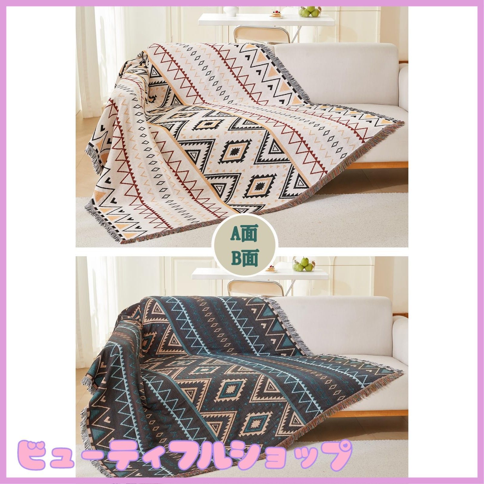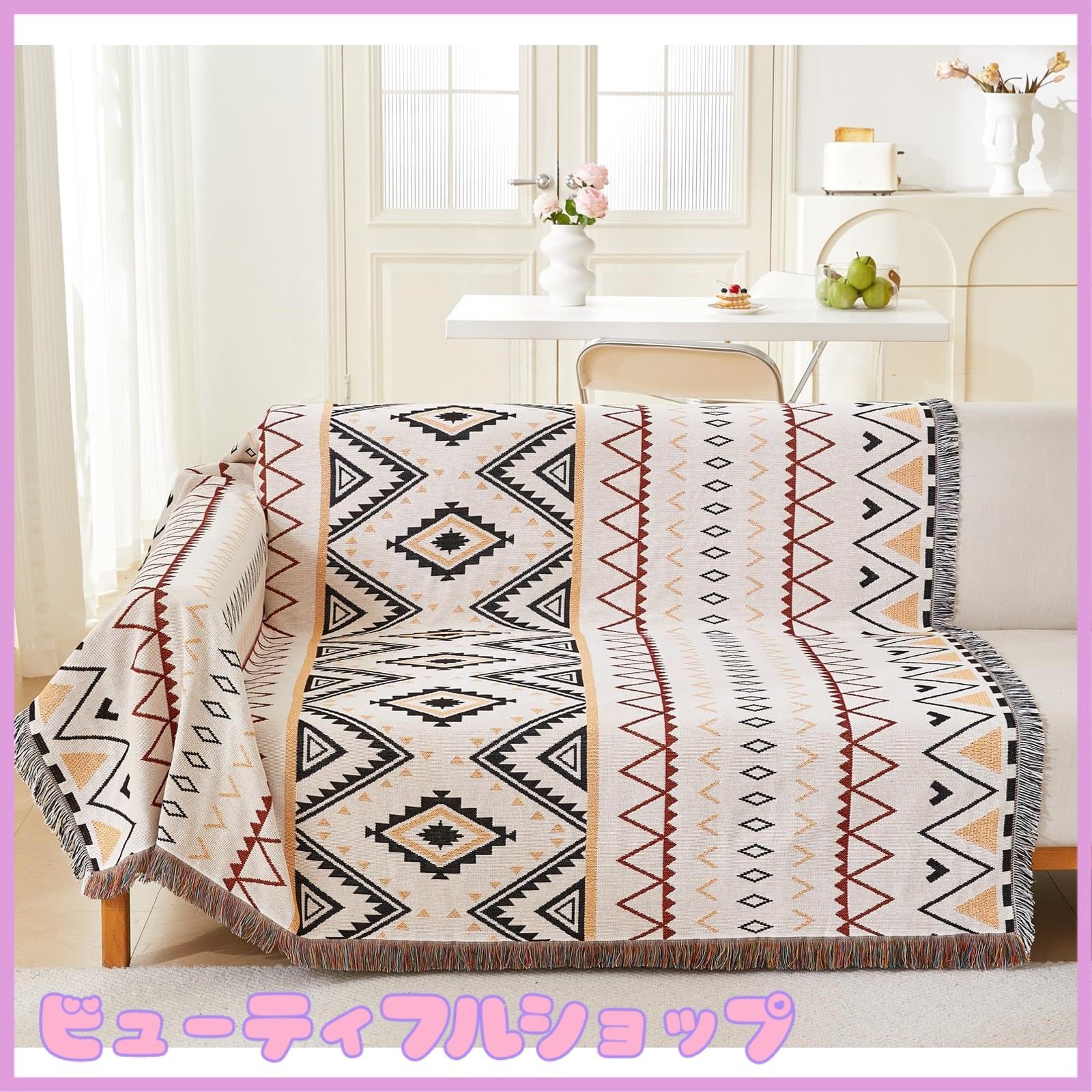 TMVOK マルチカバー 北欧風 ソファカバー おしゃれ 長方形 130*180cm ブランケットフリンジ付き 綿 2人掛け 3人掛け 4人掛け カウチ ベッドカバー 毛布 ネイティブ カーペット テーブルクロス テーブル掛け枚 リバーシブル 汚れ防止 四季通用 大判 洗える 超便利