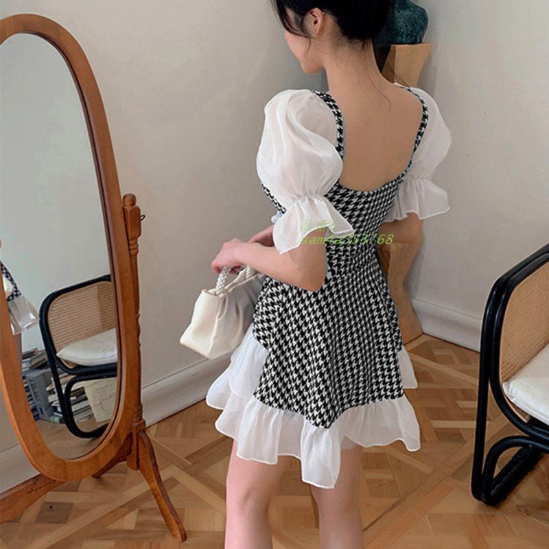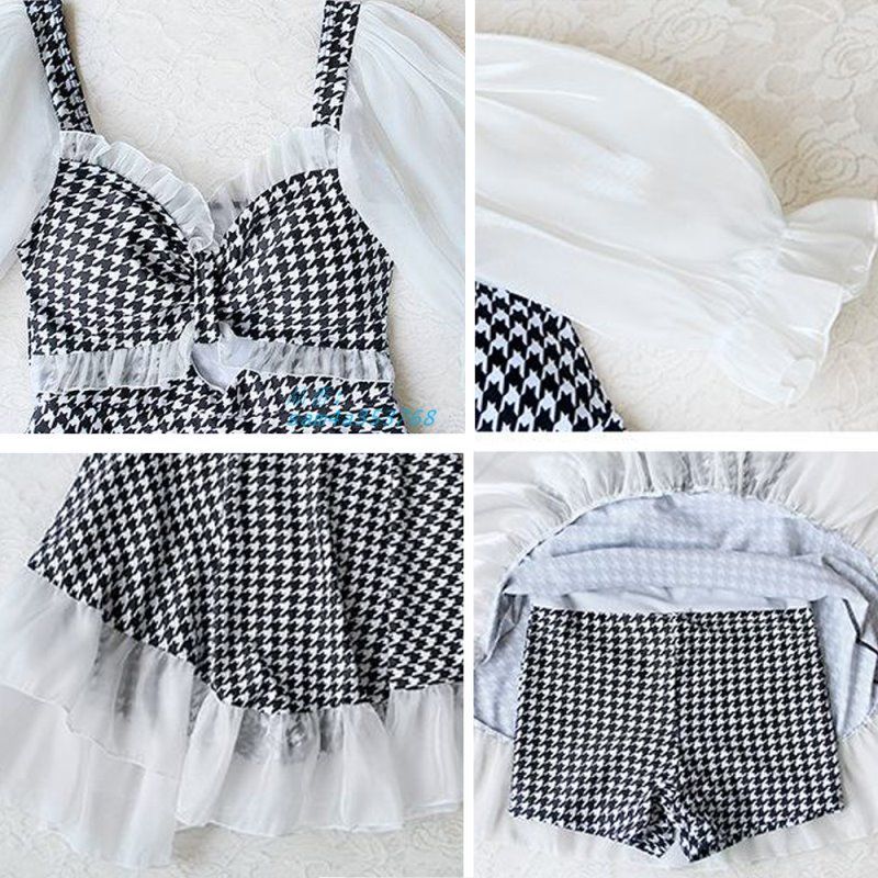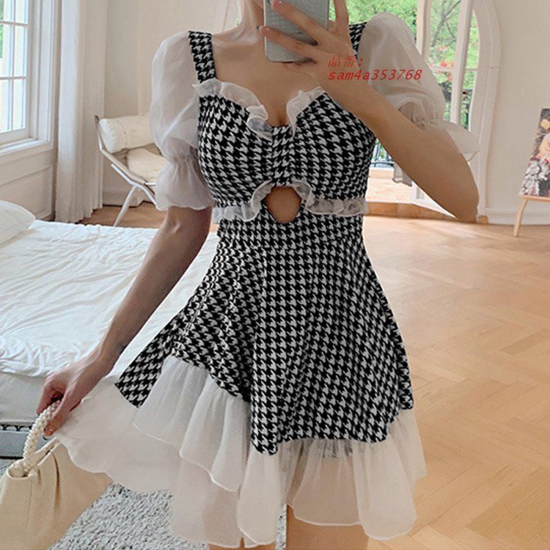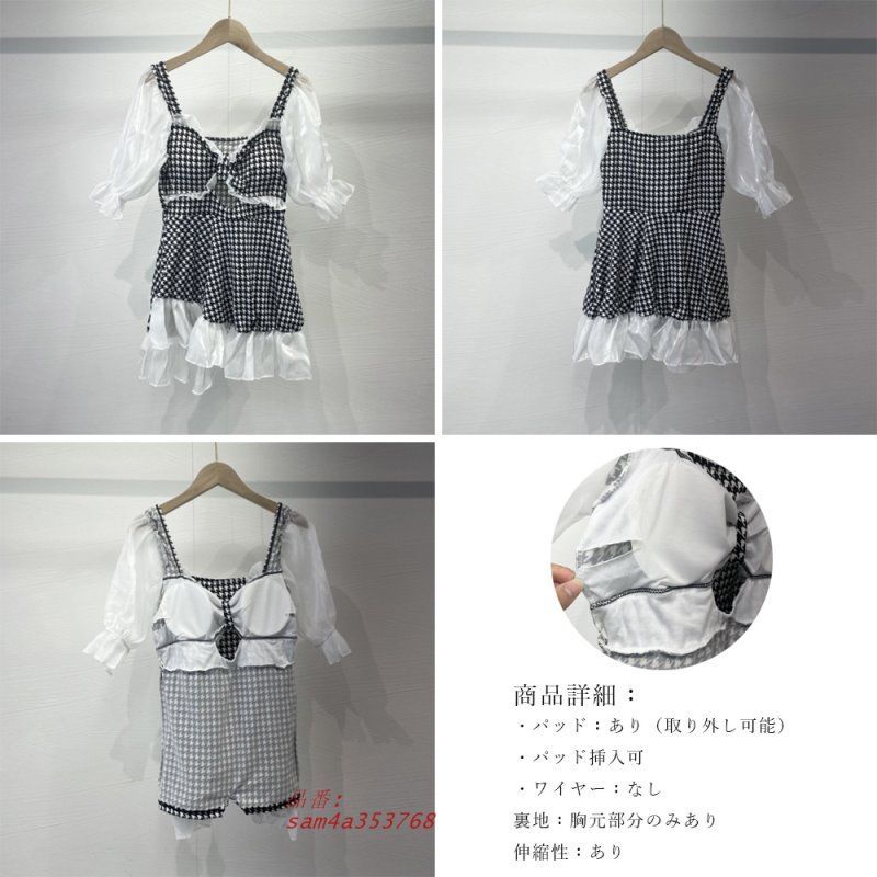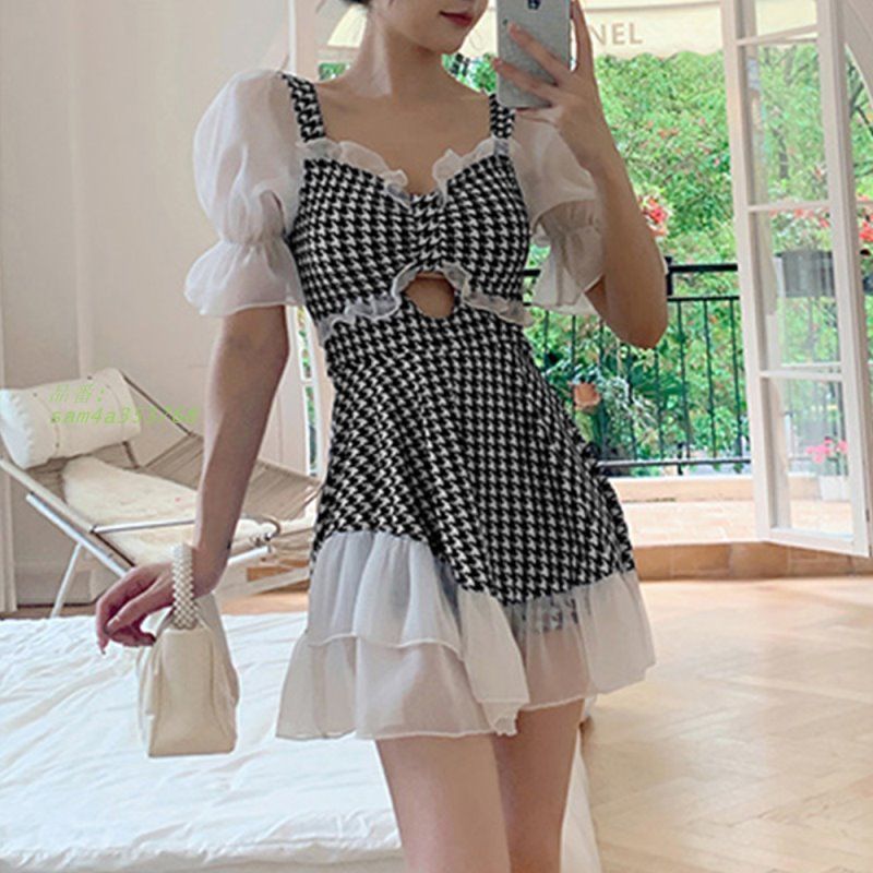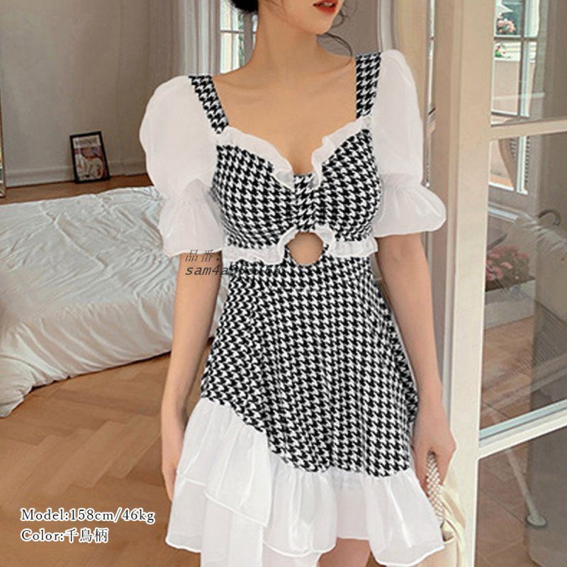 ワンピース水着 千鳥柄 韓国スイムウェア 。可 am4a353768