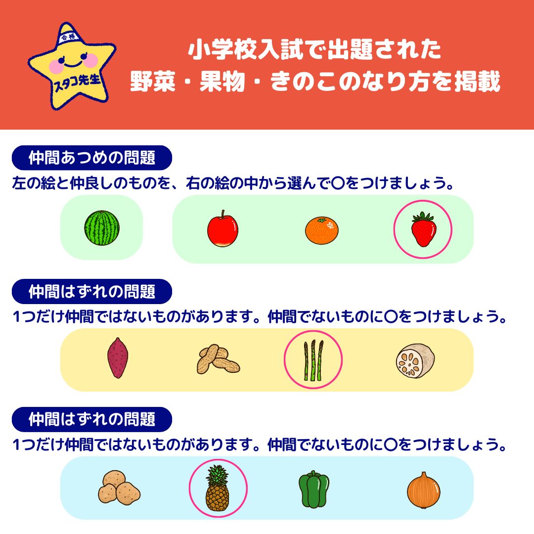 「野菜・果物」は国立・私立小学校の入試問題で頻繁に出題されるジャンルのひとつ