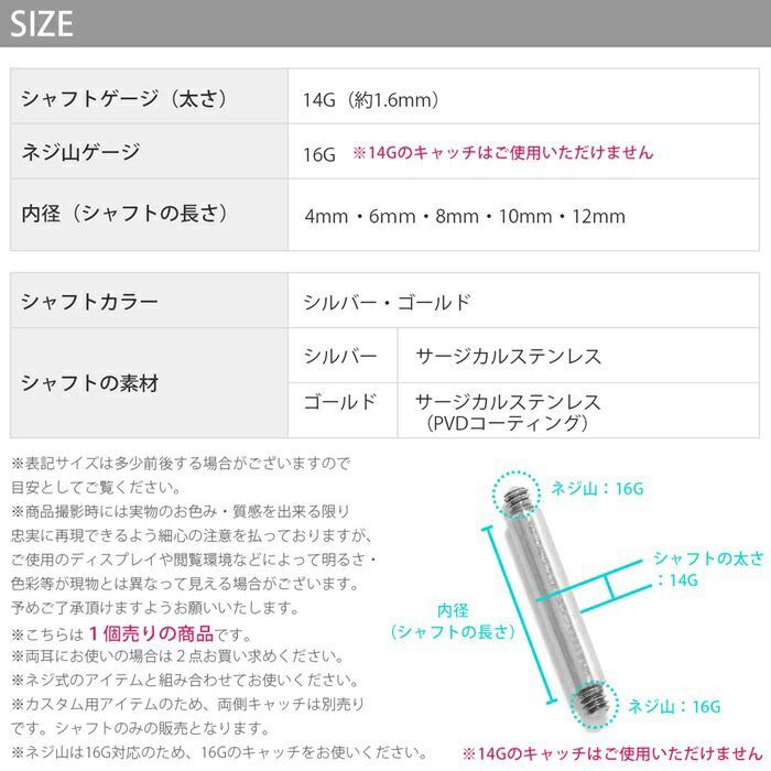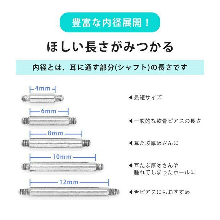 【凛公式】ボディピアス 16G 14G 軟骨ピアス 舌ピアス内径 4mm 6mm 8mm 10mm 12mm つけっぱなし マジックシャフト ストレートバーベル サージカルステンレス 金属アレルギー対応 ファーストピアス セカンドピアス 舌ピ 軟骨