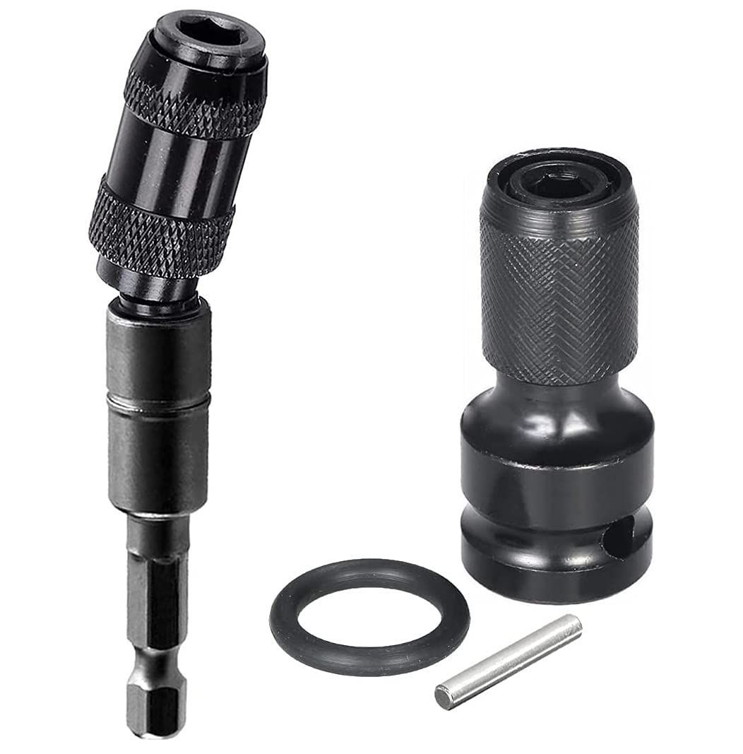 【大安売り】Wolfride インパクトドライバーアダプター 延長ビット 1/2’’四角-1/4’’六角軸 インパクトソケットアダプター 電動ドリルビット 速分離ロック 可変方向 ドライバービット延長バー 2本入り