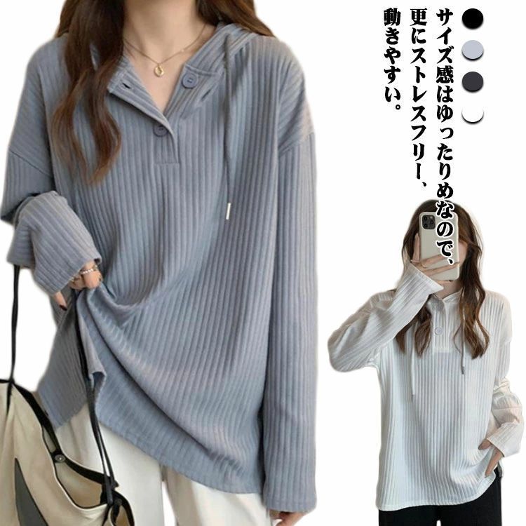 ロングTシャツ Tシャツ フード付き レディース トップス カットソー 薄手 ビッグシルエット 大きいサイズ スウェット 通勤 長袖 無地 ゆっ