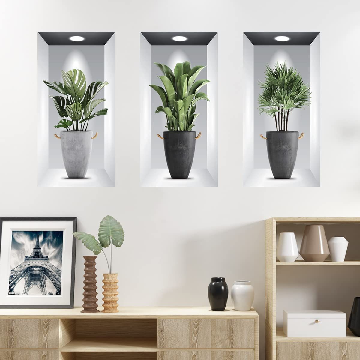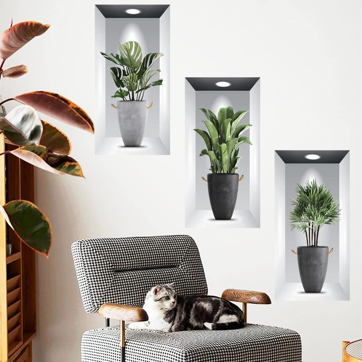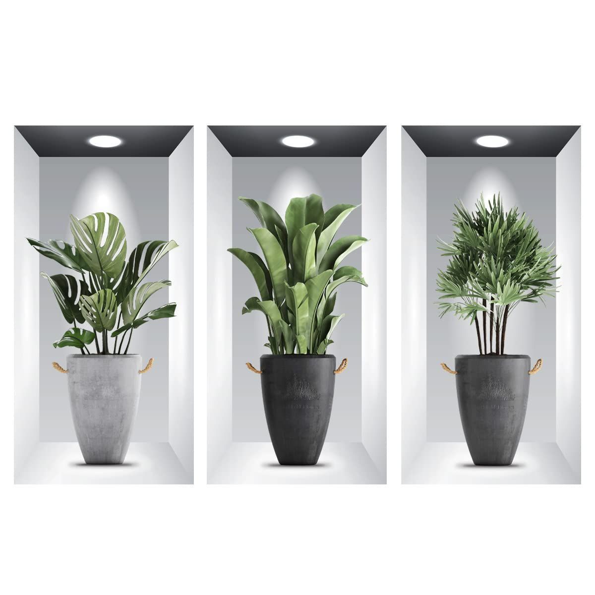 ?【3dアートシール】天然風ガーデン観葉植物 、花鉢植え、明るい色調と強い色が部屋を完璧に飾り、印刷してあなたの壁画に人目を引かせます、人を魅惑する雰囲気を作りだします
