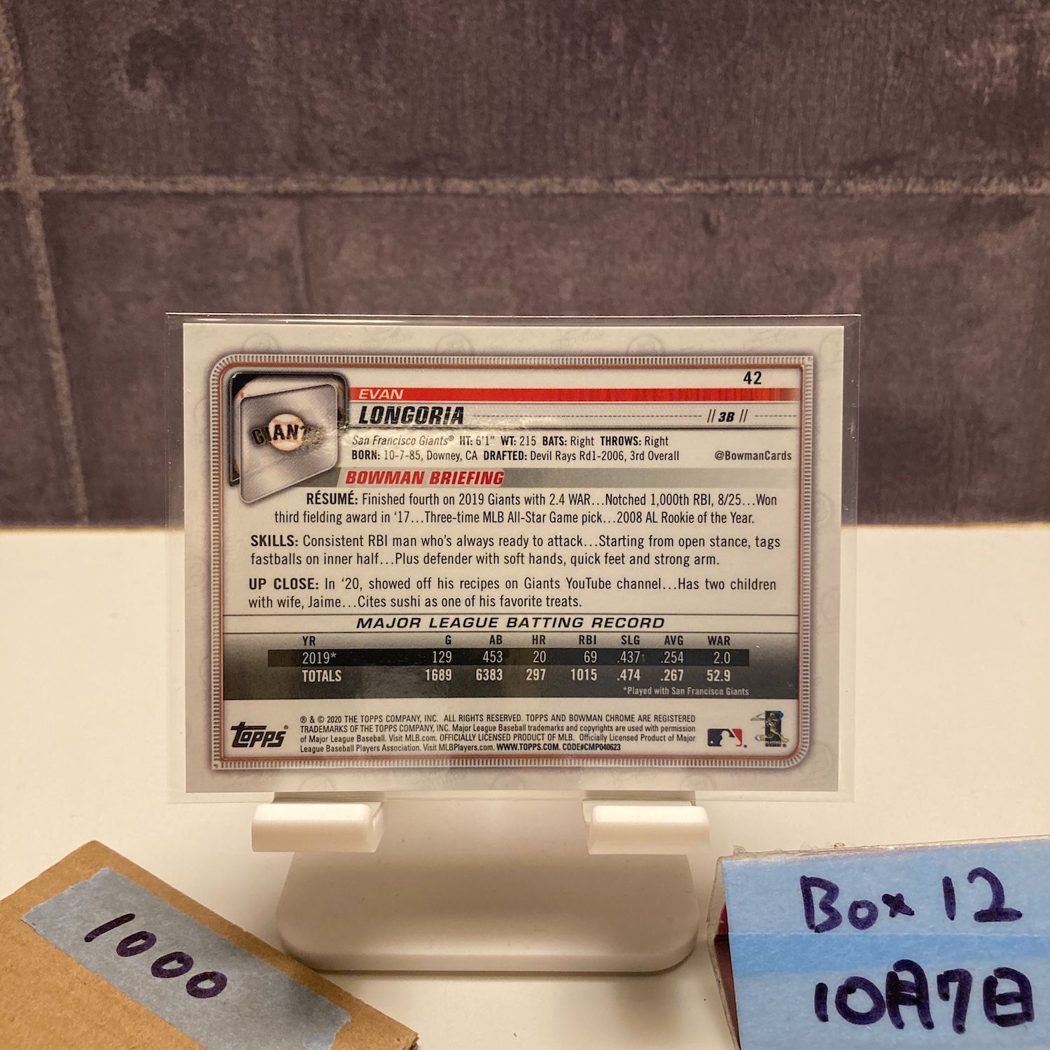 2020 Bowman Chrome Evan Longoria 185/250 San Francisco Giants Purple Refractor Parallel カード
