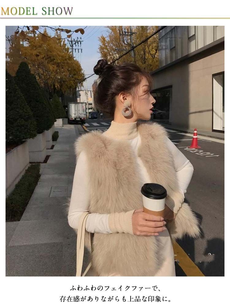 ファーベスト ファーコート レディース ジレ ファージャケット トップス ノースリーブ 羽織り 秋冬 フェイクファー ふわふわ もこもこ エコファー ロングベスト 袖なし アウター レイヤード 重ね着#whhdw6648