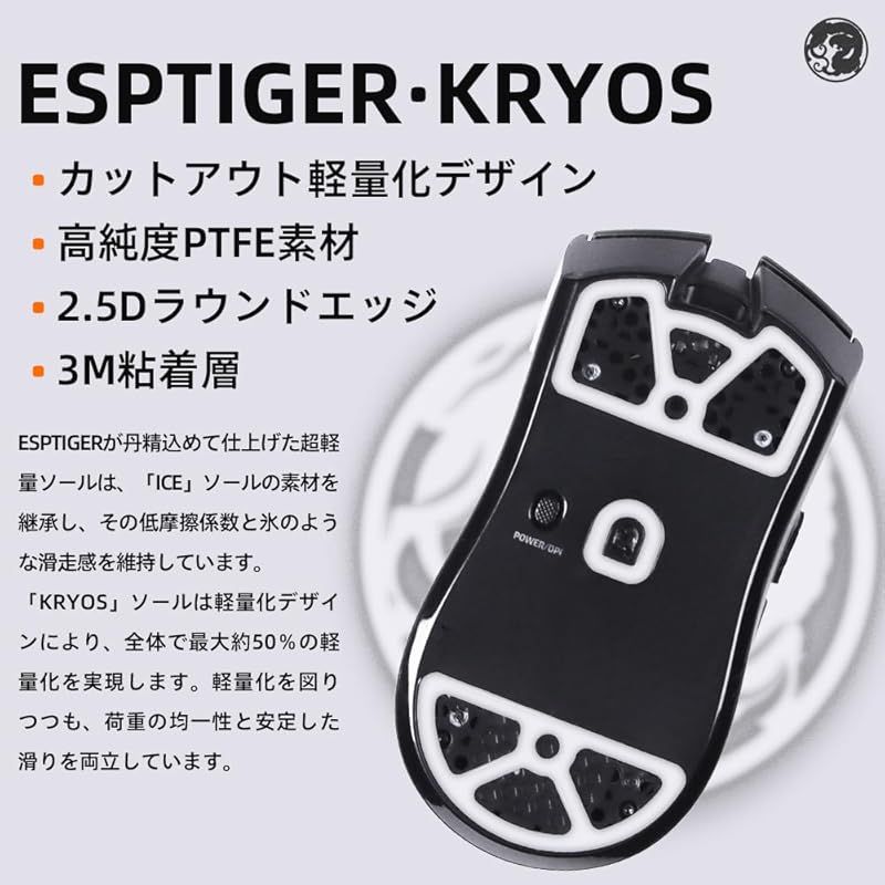 【新品】 EsportsTiger マウスソール KRYOS マウスフィート Zowie U2 / FK2-DW / S2-DW / ZA13-DW 用 白 ゲーミングマウス 滑り強化 1セット入り 0