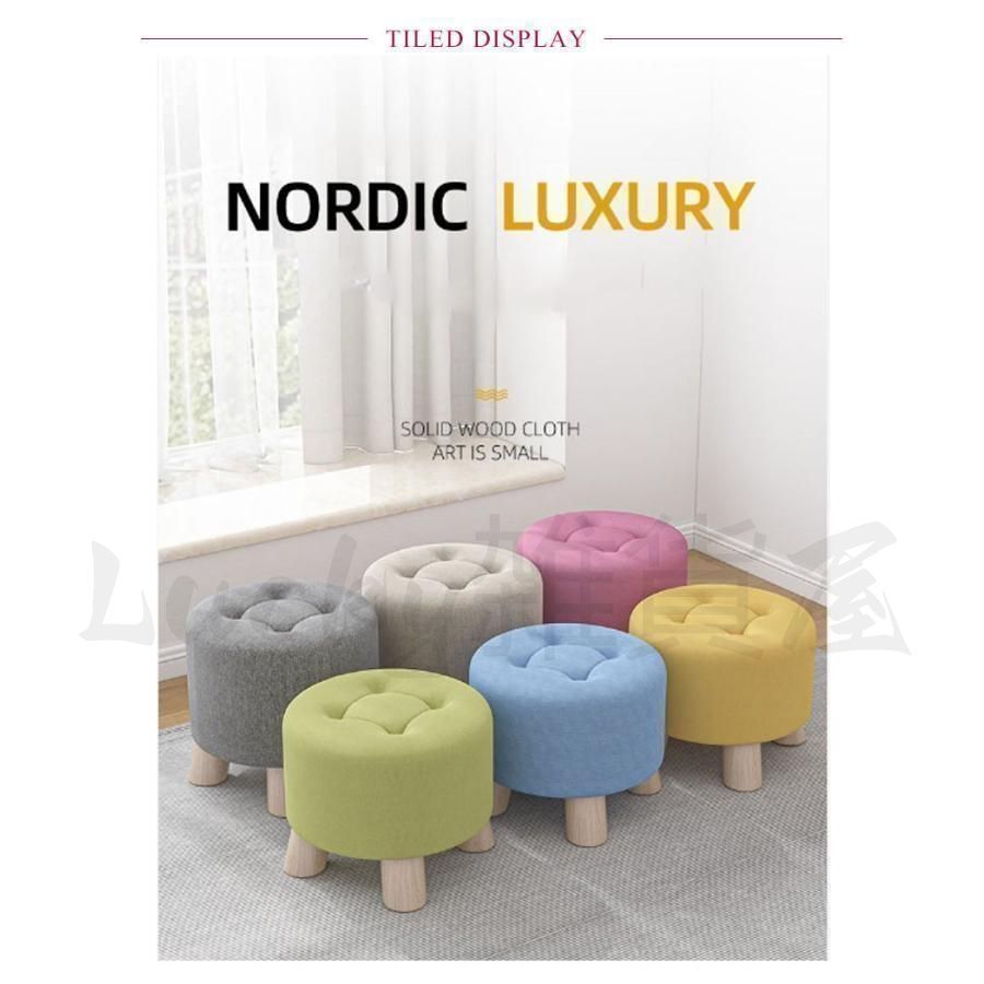 スツール プチスツール ミニスツール 木製 丸形 背もたれなし イス 椅子 玄関 シンプル 木製 布製 北欧 腰かけ 玄関 オットマン 足置き 子