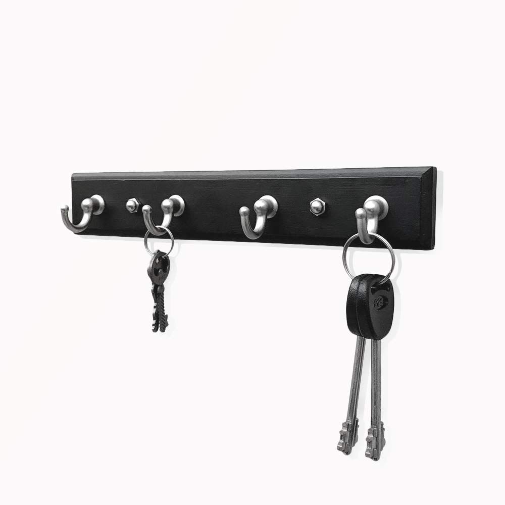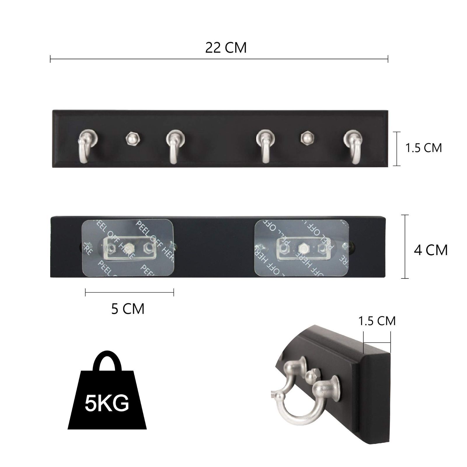 AXL -壁掛けフック 黒 - 玄関や浴室に最適な鍵掛け・帽子掛け・コート掛け、亜鉛合金/木材製 収納フック、整理整頓、省スペースデザイン ・台湾製
