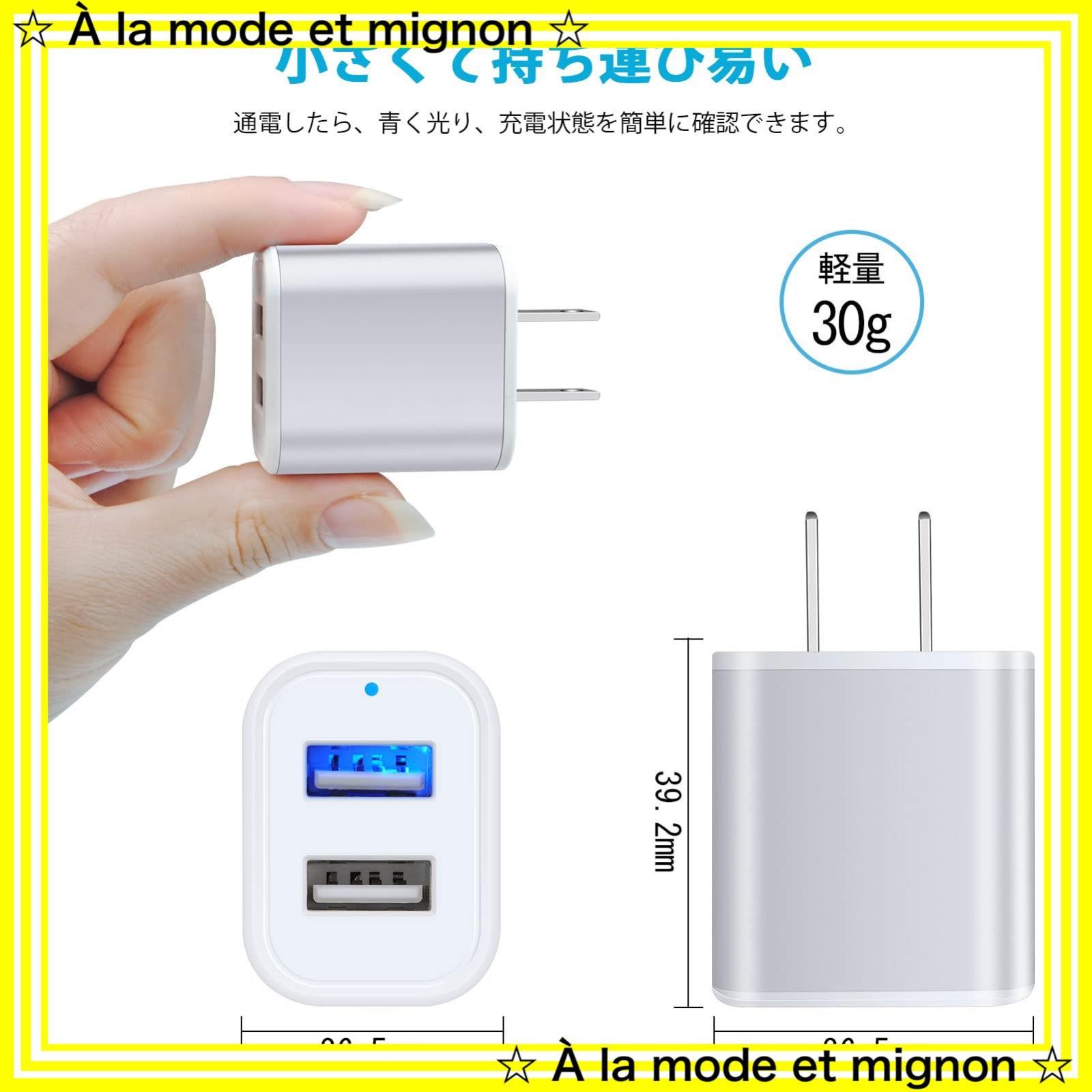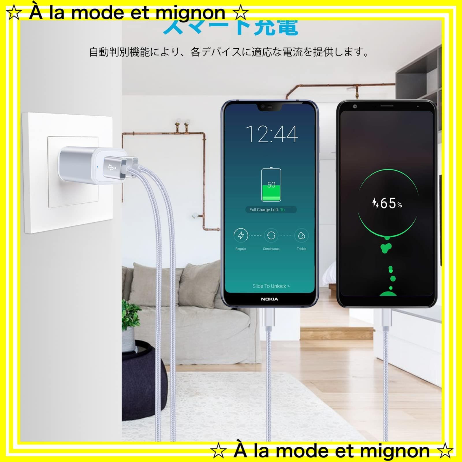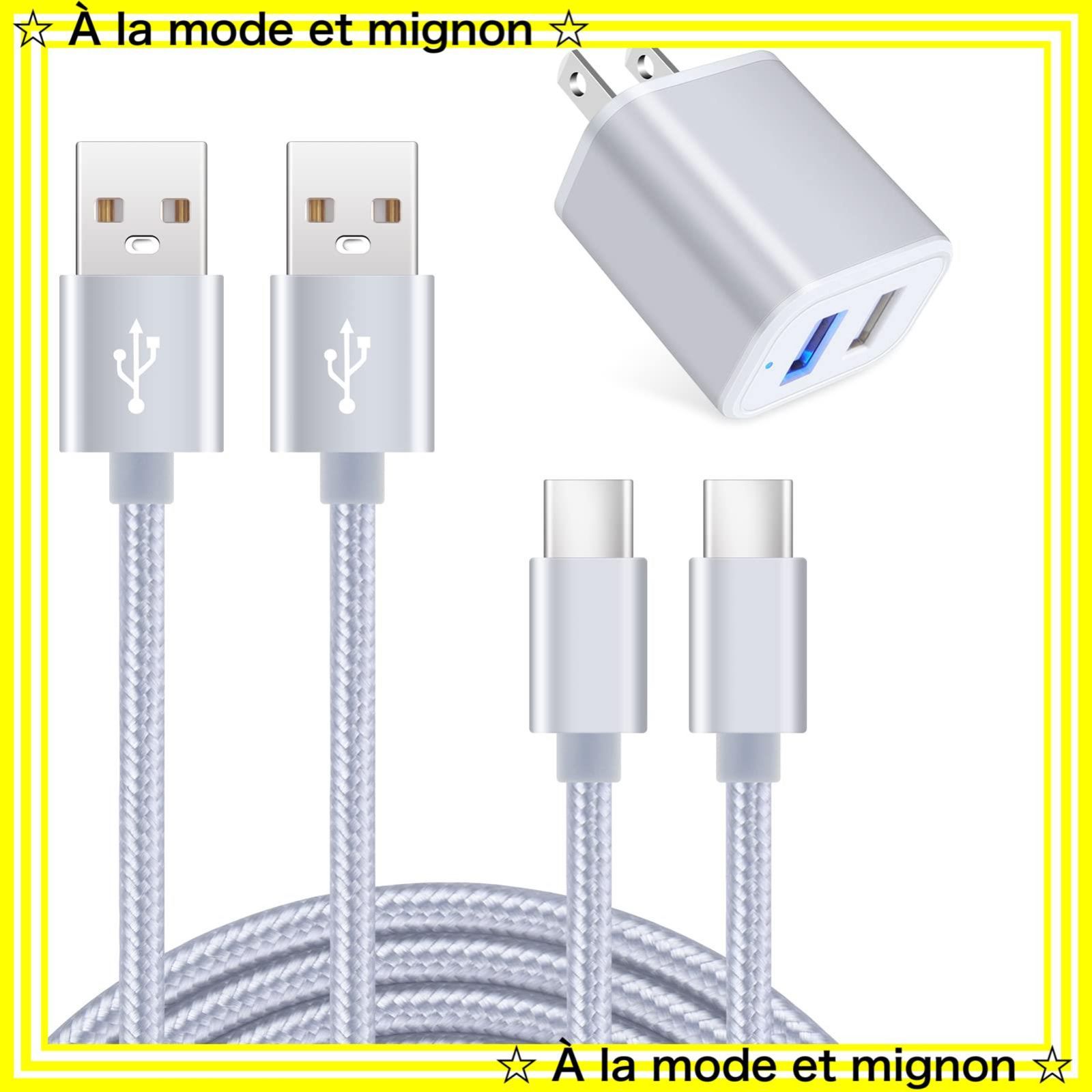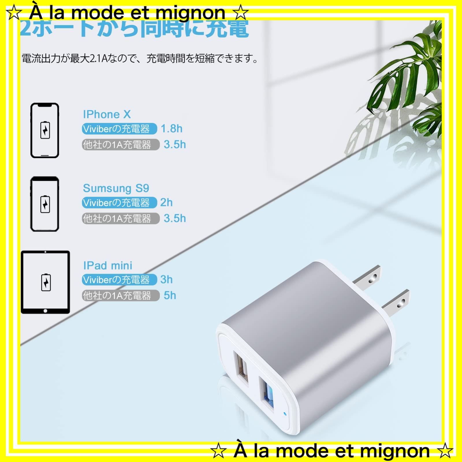 Viviber Andriod 充電器【Ledライト付き/Pse認証済】タイプC 急速充電ケーブル 2本付き【0.9M/1.8M】 USB2ポート ACアダプター Type-C USBケーブル 携帯充電器 コンセント アンドロイド スマホ充電器 軽量 コンパクト テレワーク 海外 シルバー iPhone 15対応