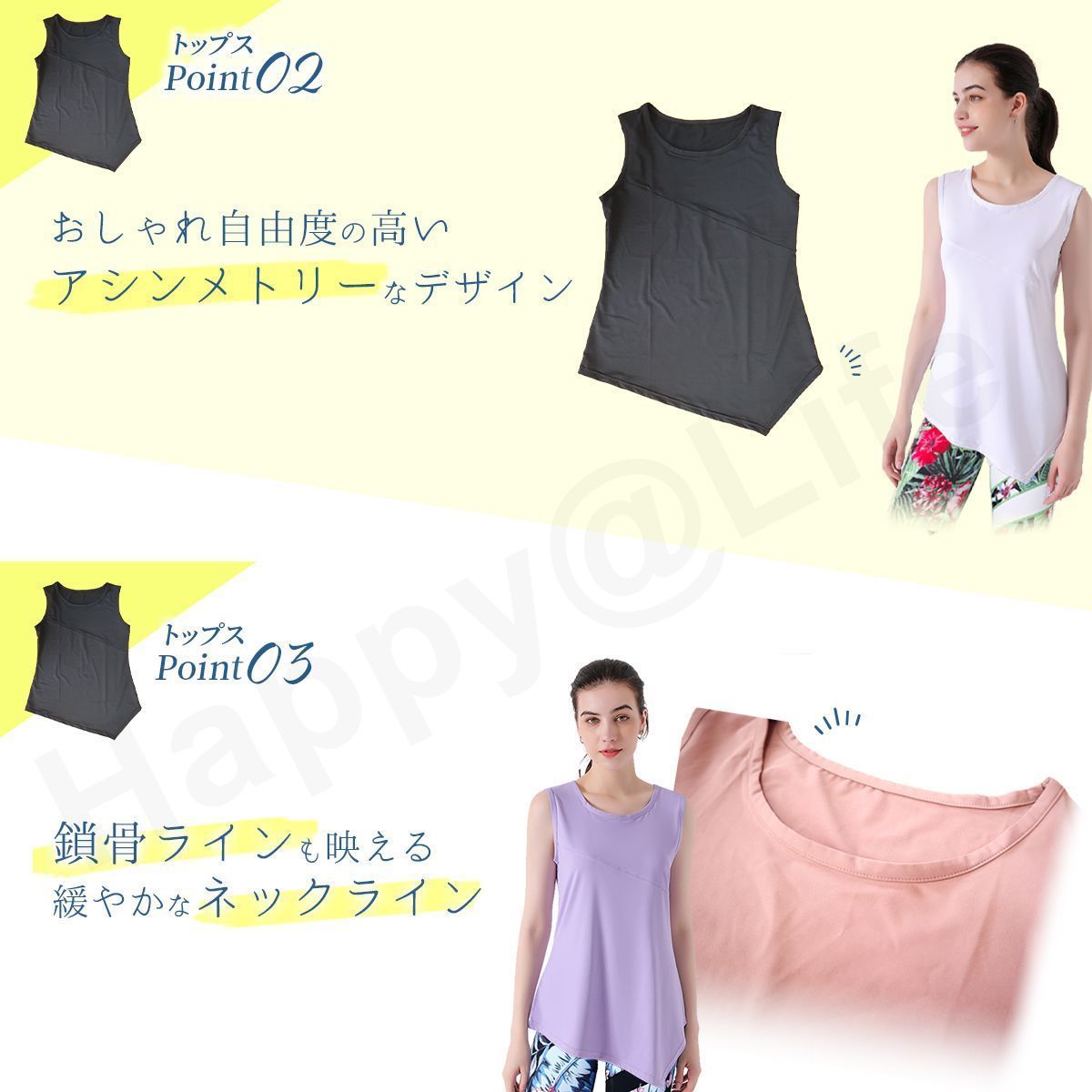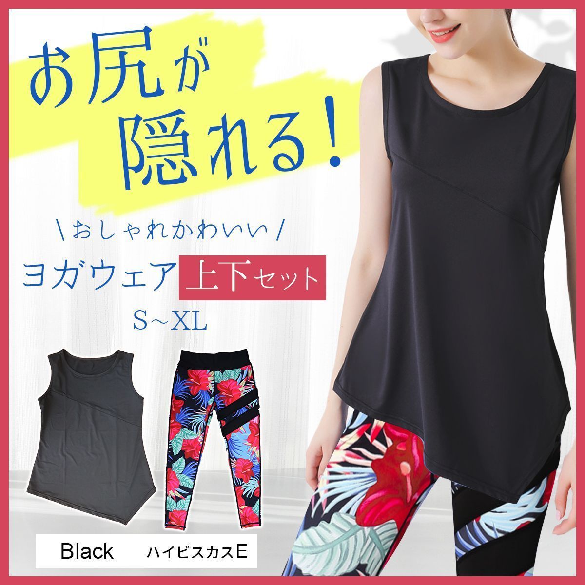 ヨガウェア ルームウェア 上下セット 体型カバー 安い おしゃれ ヨガ ルームウェア ハイビスカス ジャージ タンクトップ レギンス 花柄 無地 Black ブラック 黒