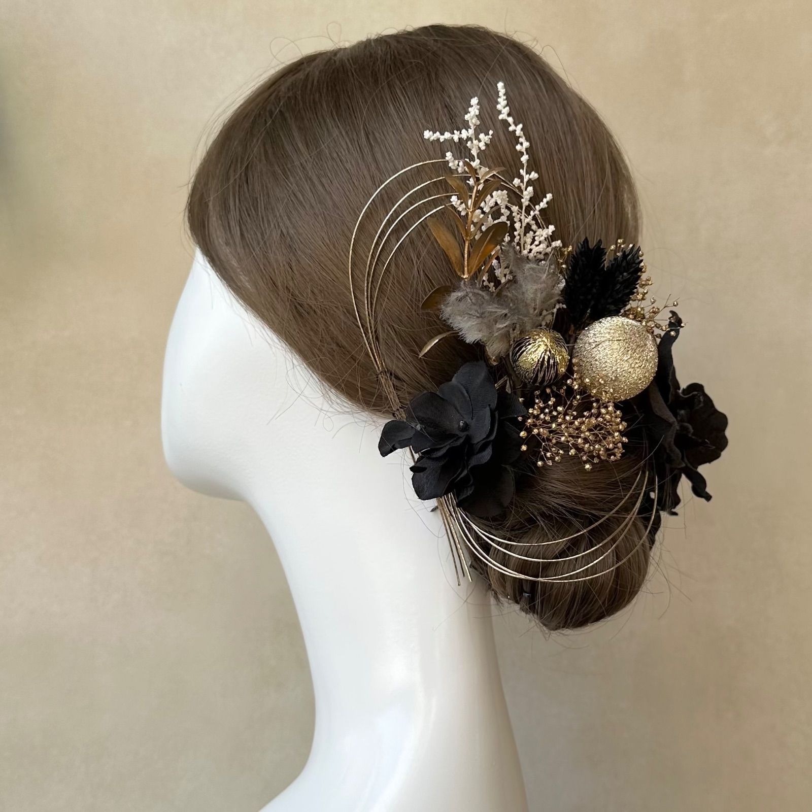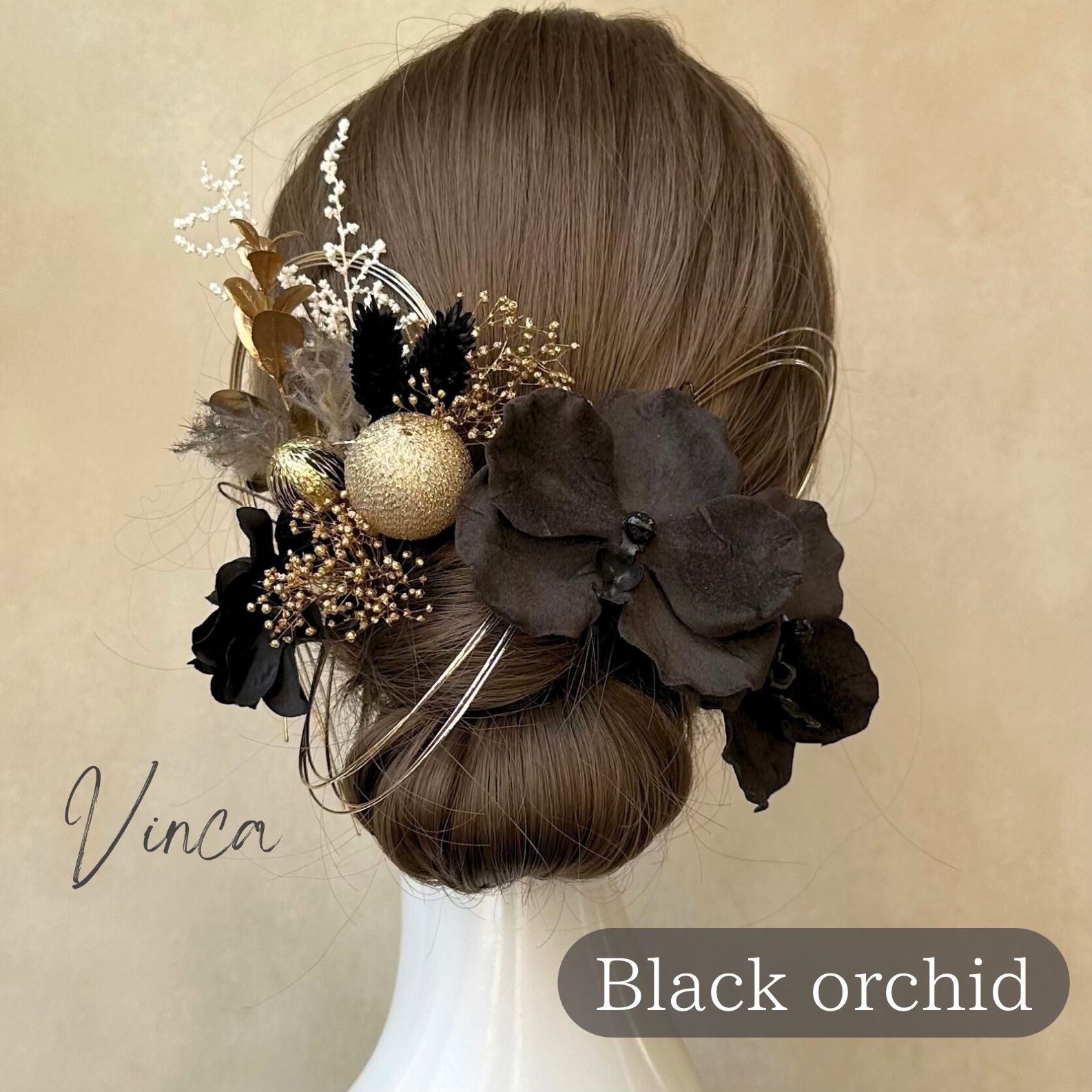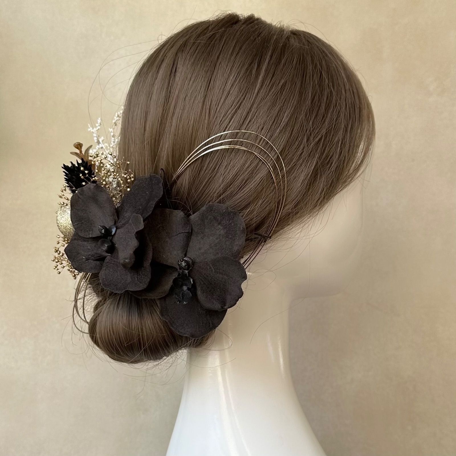ドライルックなブラック胡蝶蘭セット 【Vinca(ビンカ)和装髪飾り 】結婚式 / ウェディング / ブライダル / 白無垢 / 色打掛 / 成人式 / 振袖 / 卒業式 / 袴 / 七五三 【箔シートプレゼント中】