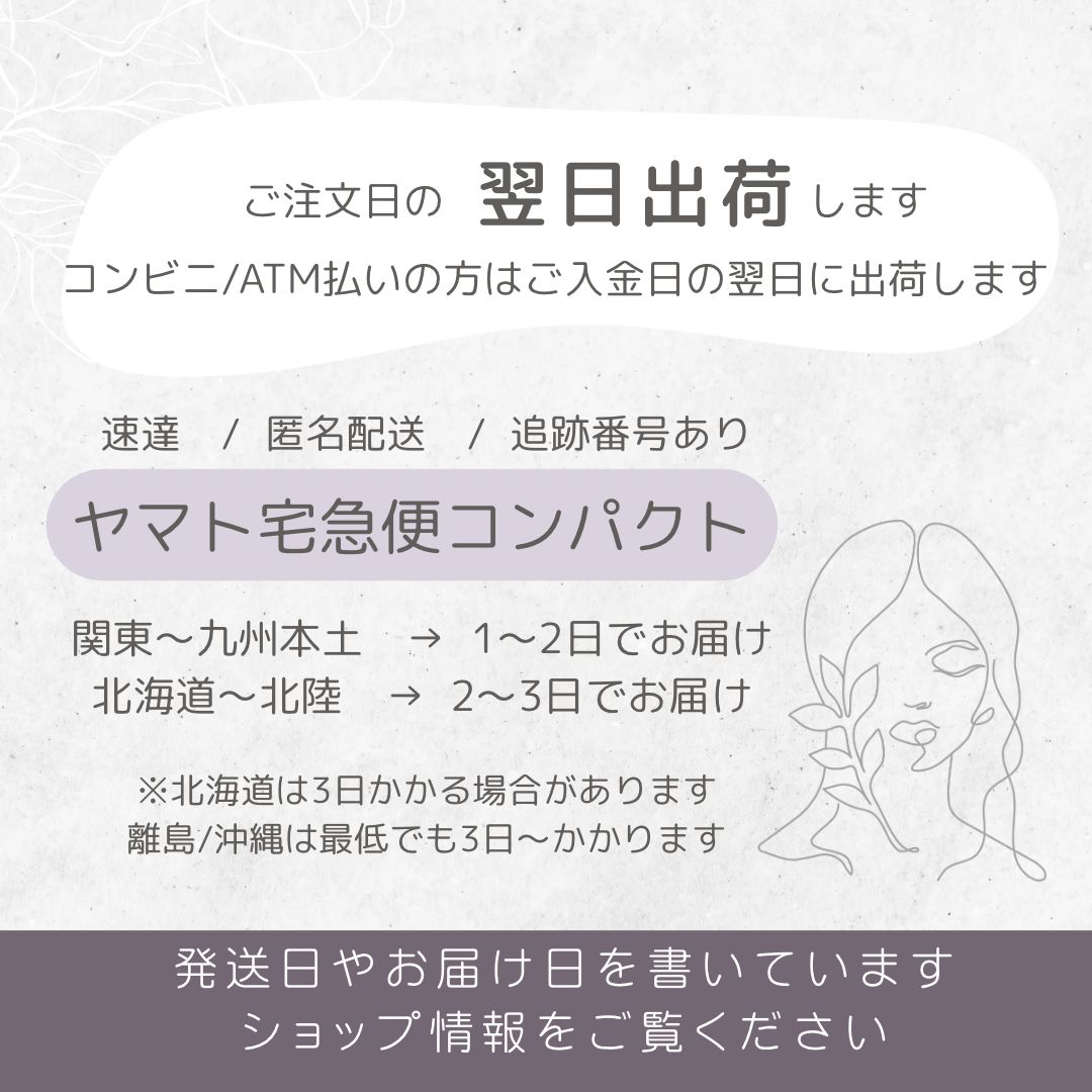 【ご購入の方全員】箔シート1枚プレゼント中! ─────────────────────── 《発送について》 ヤマト宅急便コンパクト(速達 / 匿名配送 /追跡有)で発送します。 ※基本的にはご入金日の翌日出荷(土日祝も対応◎) →発送日から1〜3日程度でお届けになります ・【発送日】はshop名に記載しています ・【お届け予定日】はshop情報をご覧ください ─────────────────────── 人と被りたくない方におすすめのベルベット素材の胡蝶蘭。 造花とドライフラワーをmixし、ゴールドのパーツをポイントで効かせたデザインに仕上げました。 《セット内容》 ●ブラック胡蝶蘭 (横 約8.5cm) × 2輪 ●水引 ゴールド ( 90cm × 4本組 ) ●和玉パーツ大 ( ゴールド ) ●和玉パーツ小 (黒ゴールド ) ●黒系のお花 × 3種 ●かすみ草 ( ゴールド ) × 2本 ●ゴールドリーフ ●ホワイトリーフ 【お花の加工について】 お花はワイヤーIピン加工で仕上げております。 自由に曲げることが出来るので、お花の向きをベストな角度で付けていただけます。 和玉はUピン加工でしっかり固定できるようにお作りします。 梱包の際はワイヤーを少し曲げて箱に詰めさせていただきます。 【箱つきでお送りします】 BOXに入れて梱包させていただきます。 持ち運びや保管にも便利です。 ⋱⋰ ⋱⋰ ⋱⋰ ⋱⋰ ⋱⋰ ⋱⋰ ⋱⋰ ⋱⋰ ⋱⋰ ⋱⋰ 別ページにシンプルなデザインや他のお花やパーツと組み合わせたデザインも出品しております。 他にも種類豊富に胡蝶蘭を取り扱っています。 是非 SHOP ページも覗いてみてくださいね。 ⋱⋰ ⋱⋰ ⋱⋰ ⋱⋰ ⋱⋰ ⋱⋰ ⋱⋰ ⋱⋰ ⋱⋰ ⋱⋰ 《パーツの追加について》 お花の数を増やしたい、別のデザインのパーツを入れたい、などもご相談ください。 出品中のお花やパーツであれば、ご希望のパーツを追加する事が可能です。 [ 質問する ]からお問い合わせいただければ追加パーツ分の料金をご案内させていただきます。 ⚠︎お花やパーツのみのバラ売り販売、パーツを減らして値引きなど現在の販売金額を下回るご対応はいたしかねます。 《おまとめ購入について》 メルカリshopではおまとめ機能がないため、複数のセットをまとめてご注文の場合は[質問する]からお気軽にお問い合わせください。 ※おまとめ値引はございませんので予めご了承ください。 やり取りが面倒な方やお時間のない方は1件ずつご注文いただいても大丈夫です。 その場合は同梱ではなく、ご注文ごとに分けての発送とさせていただきます。 ⋱⋰ ⋱⋰ ⋱⋰ ⋱⋰ ⋱⋰ ⋱⋰ ⋱⋰ ⋱⋰ ⋱⋰ ⋱⋰ 《 注意事項 》 ・一つ一つ丁寧にお作りしておりますが、ハンドメイド品になりますのでご理解いただける方のみご注文をお願いいたします。 ・かすみ草やホワイトリーフはプリザーブドフラワーの為、形に多少の個体差があります。天然素材につきご理解ください。 ・天候や交通状況により配達遅延が発生する場合があります。 運送会社による配達遅延への責任は負えませんので、ご使用日までに余裕を持ったご注文をお願いいたします。