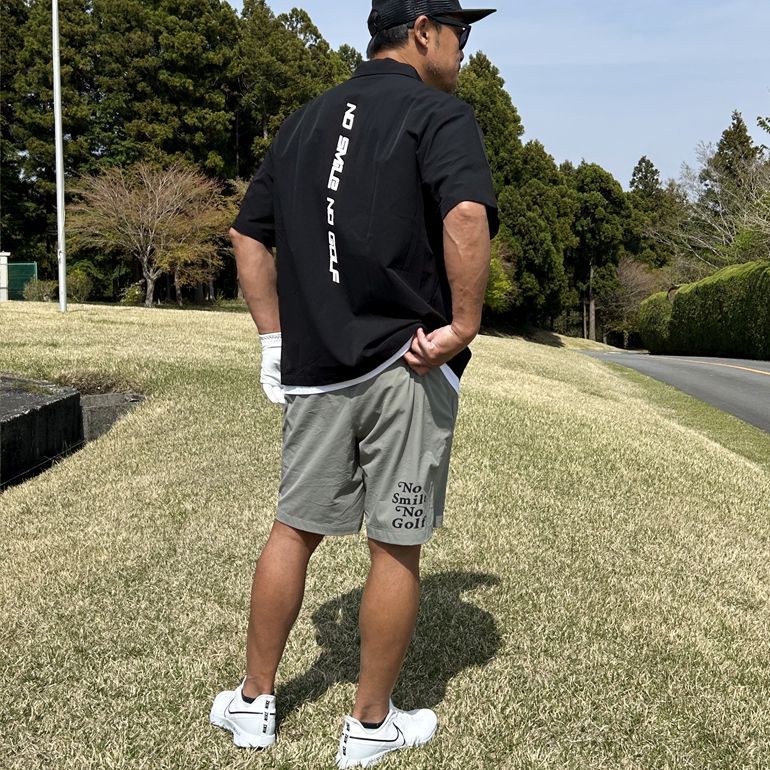 新品【COMONGOLF/コモンゴルフ】バックプリントゴルフショートパンツ/グレー(CG-S25006)M L XL XXL XXXL ゴルフウェア メンズ ハーフパンツ 短パン 半ズボン 夏 ウエストゴム ストレッチ 撥水性 ゴルフパンツ 大きいサイズまで