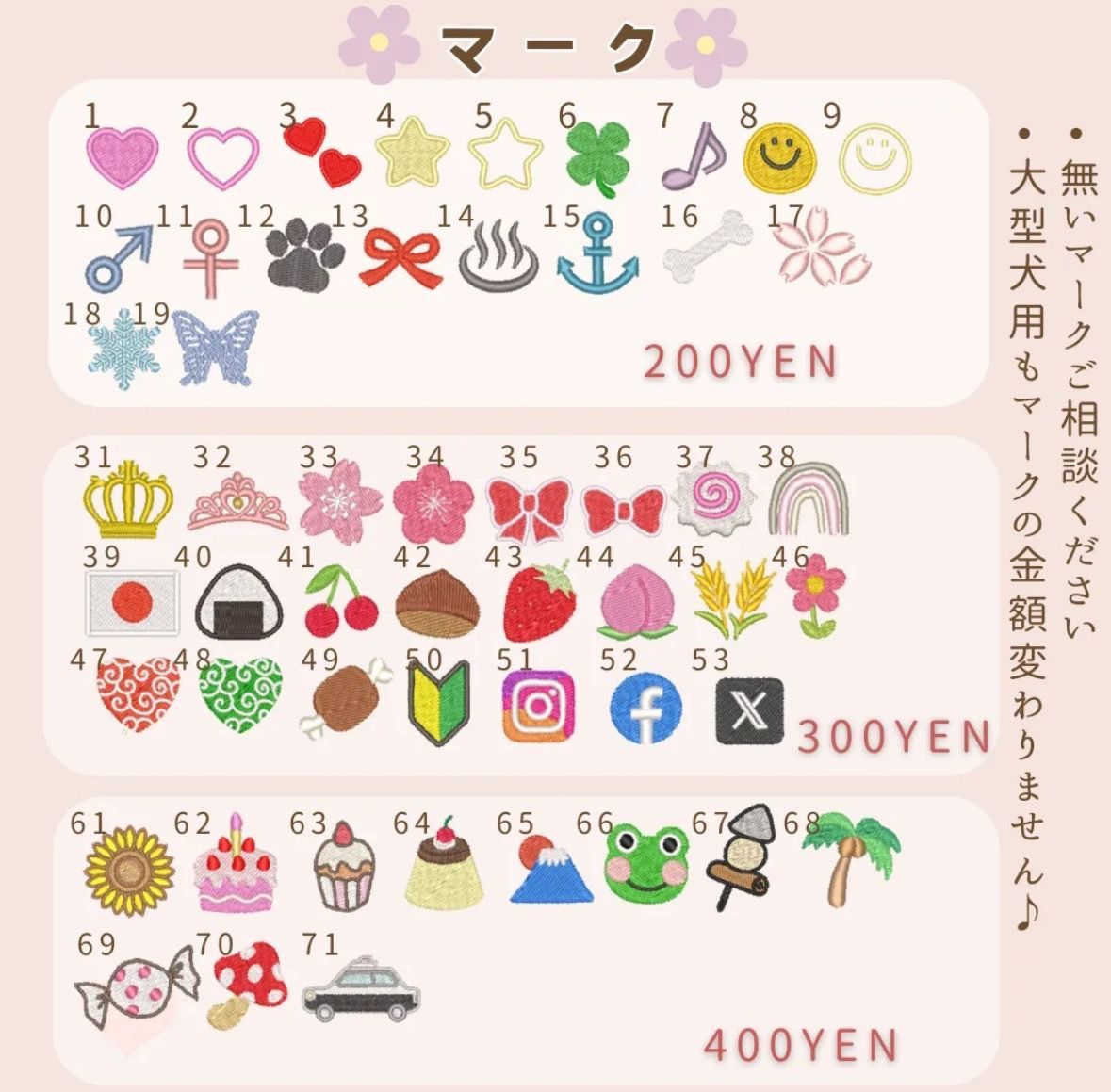 ご希望の新規マーク作成無料、糸色ない場合ご相談ください♪