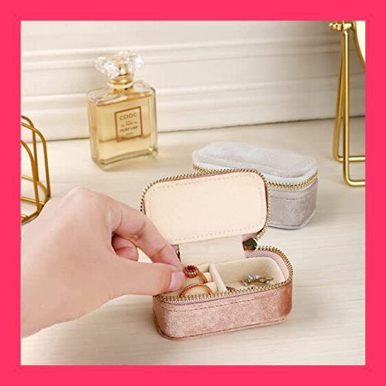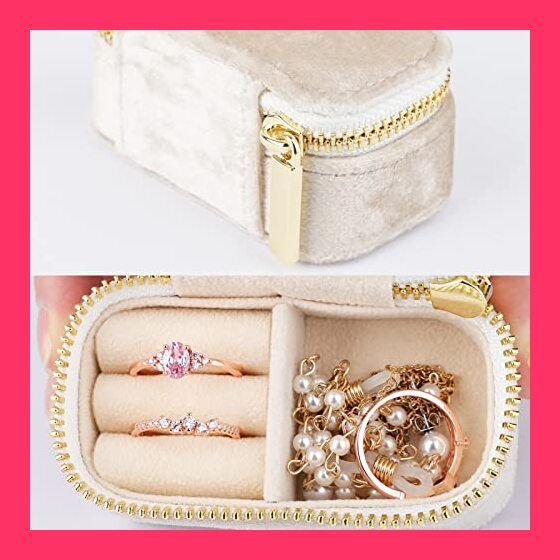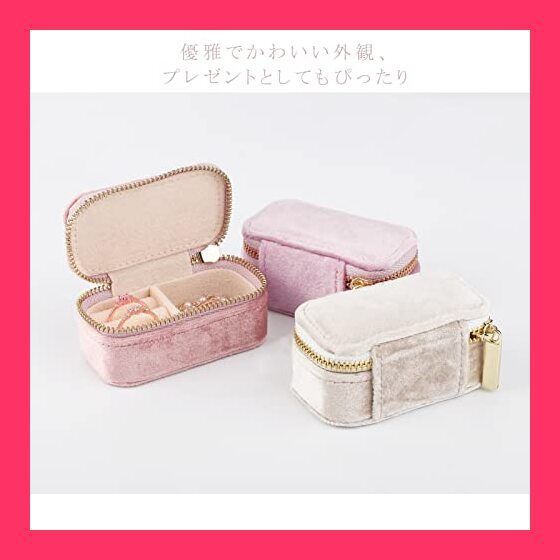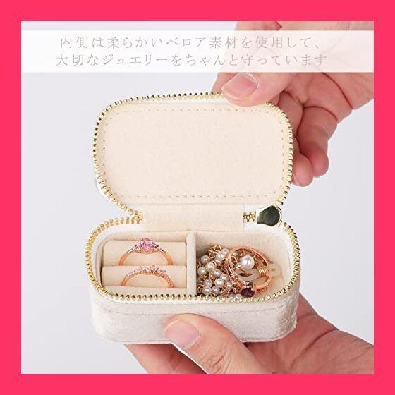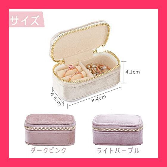 【ミニサイズで持ち運びに便利】寸法:8.4*4.6*4.1cm。普段の外出やお泊り、旅行などにも便利な手のひらサイズのプチジュエリーケース。また、退社後のお出かけ用のジュエリーを保管しておくのにも最適です。