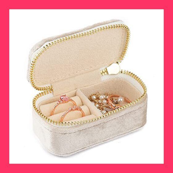 Sitengle ジュエリーボックス 携帯用 ミニ ジュエリーケース 持ち運び コンパクト アクセサリーケース 指輪ケース ミニ ポーチ 可愛い トラベル ピアス ネックレス 指輪 リング アクセサリー 指輪置き (シャンパン色)