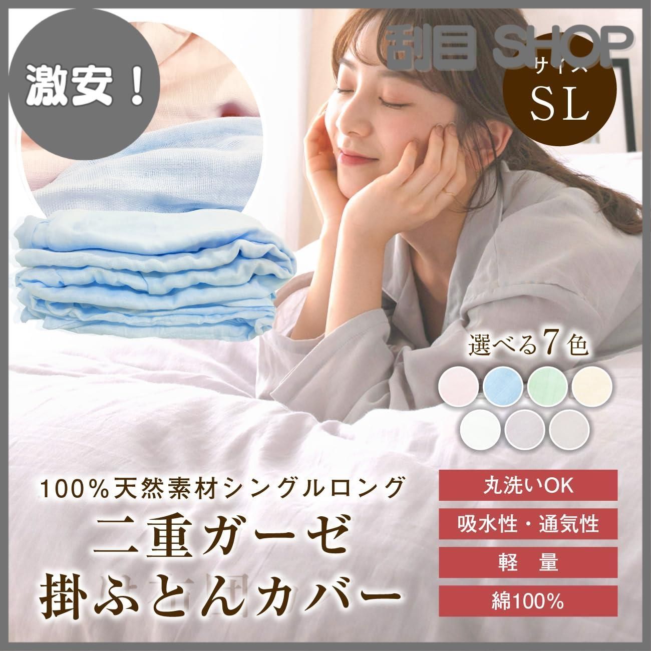 【激安!】ふとんのふっとんだ 掛け布団カバー 2重ガーゼ 綿100% 寝具 羽毛布団カバー シングル 150x210 丸洗いOK オールシーズン 無地 コットン 肌ざわり 快適 ズレ防止ひも付 (ブルー)