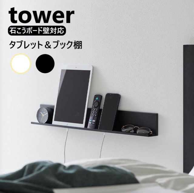 石こうボード壁対応タブレット&ブック棚 タワー 山崎実業 tower ホワイト ブラック 2196 2197 壁掛け 棚 ウォールシェルフ タワーシリーズ yamazaki 壁掛け 棚 ウォールシェルフ スマホ 携帯 リモコン 本 メガネ 時計 リビング 寝室