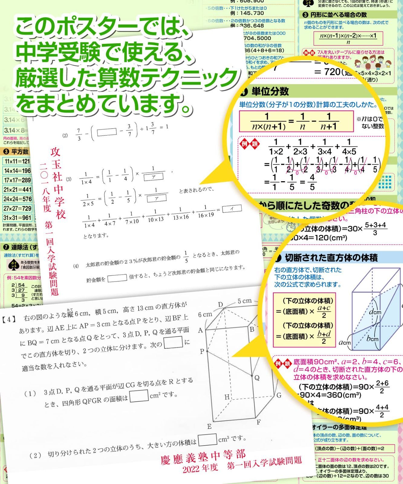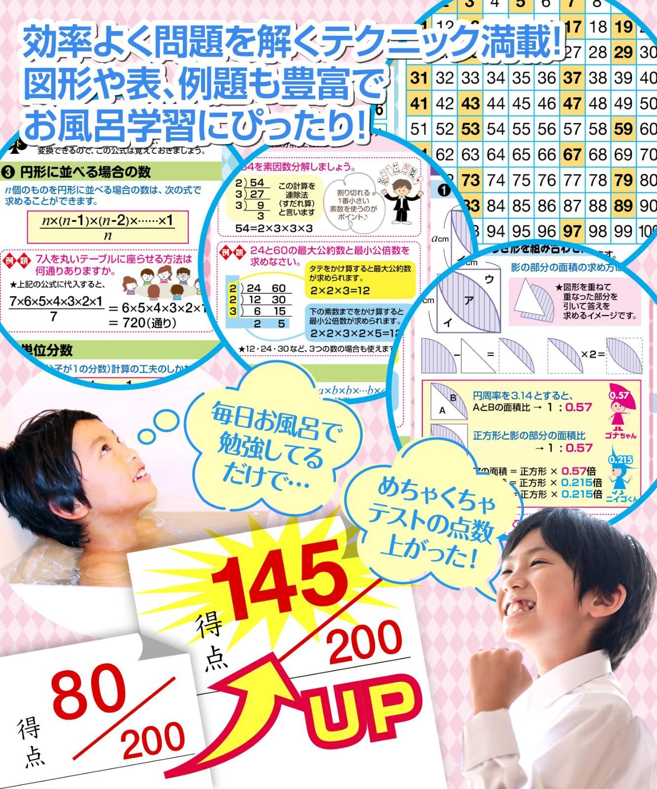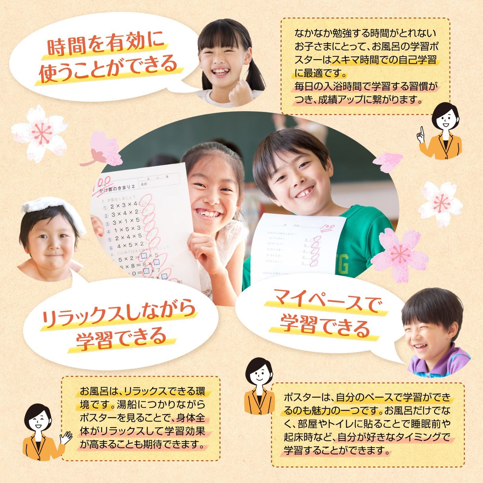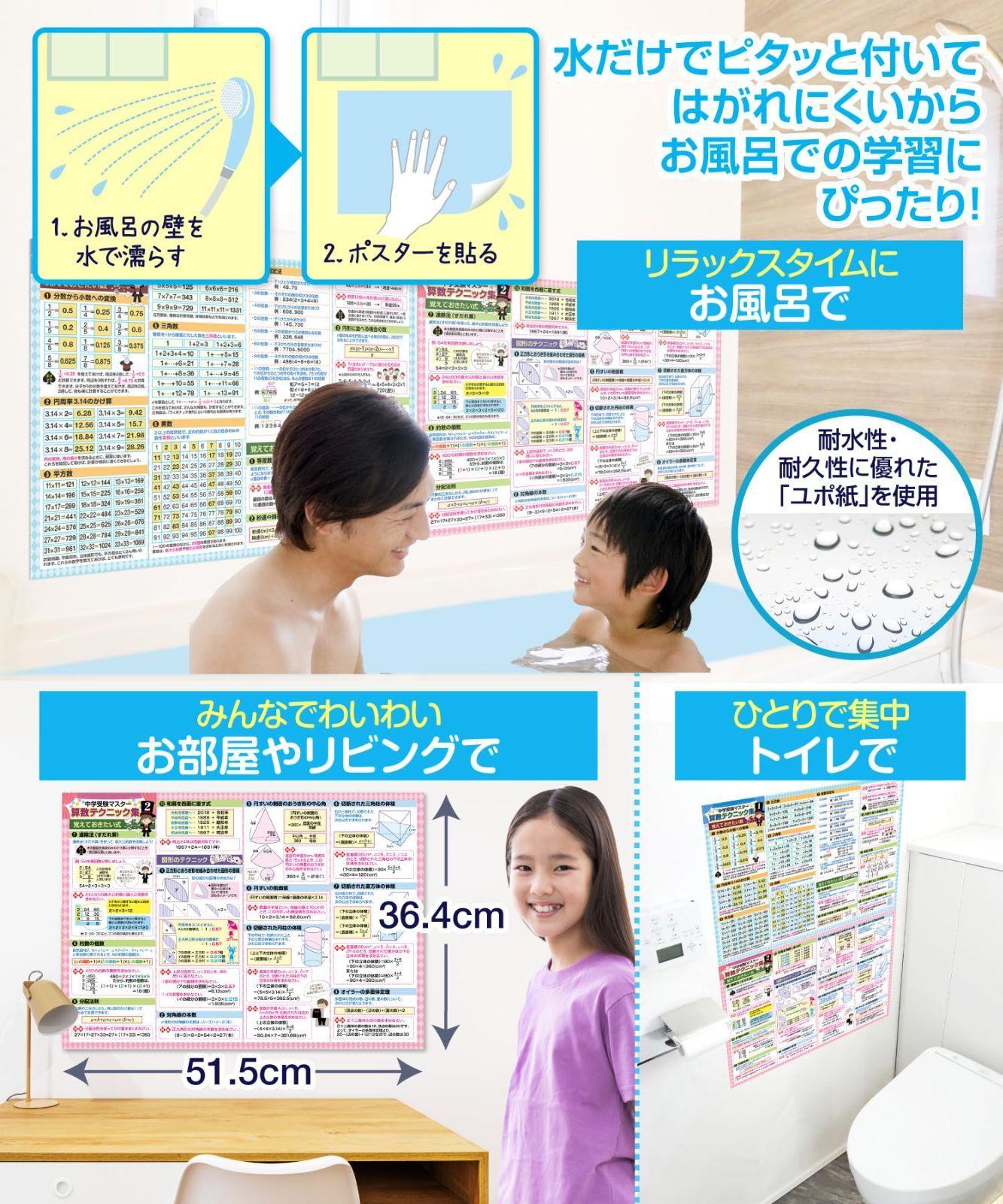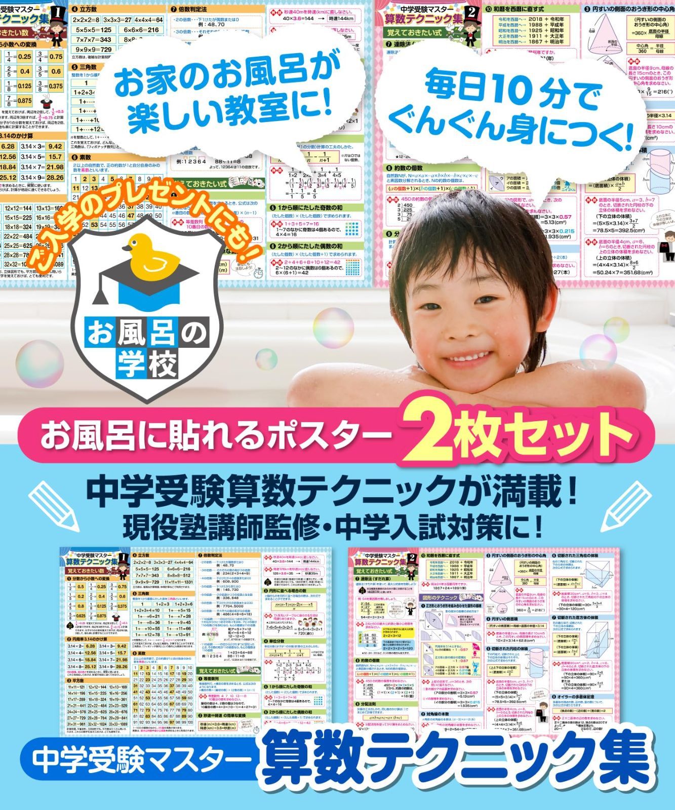【在庫処分】お風呂の学校 中学受験マスター算数テクニック集 お風呂ポスター 2枚セット 日本製 中学受験に必要な算数テクニック 学習 知育 B3サイズ 防水