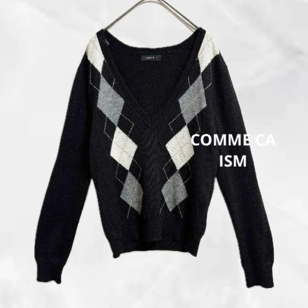 b969【コムサイズム】アーガイル柄Vネックニットセーター長袖スクールカジュアル