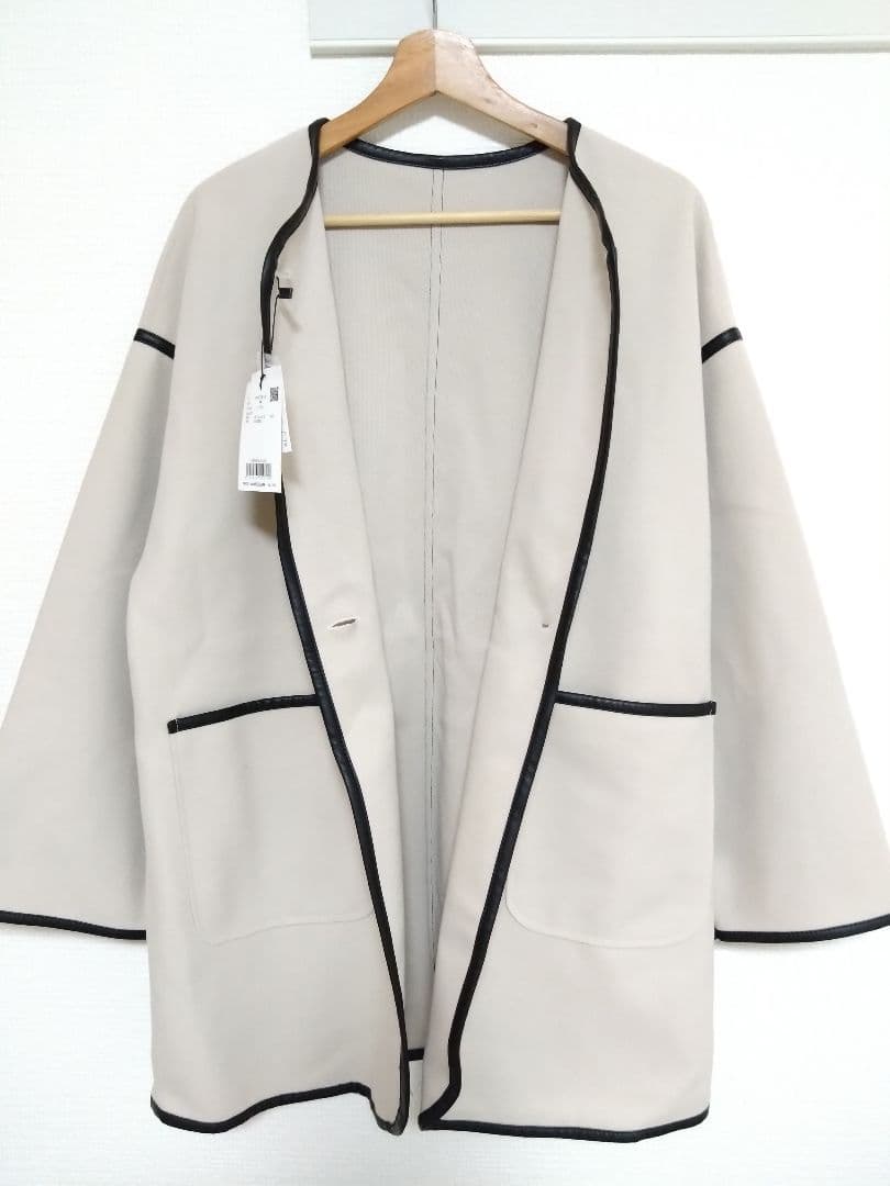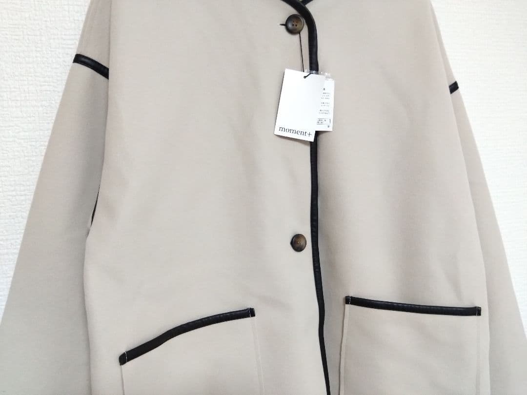 ♡moment+のニットメルトンノーカラーパイピングコートМサイズ・アイボリーです。