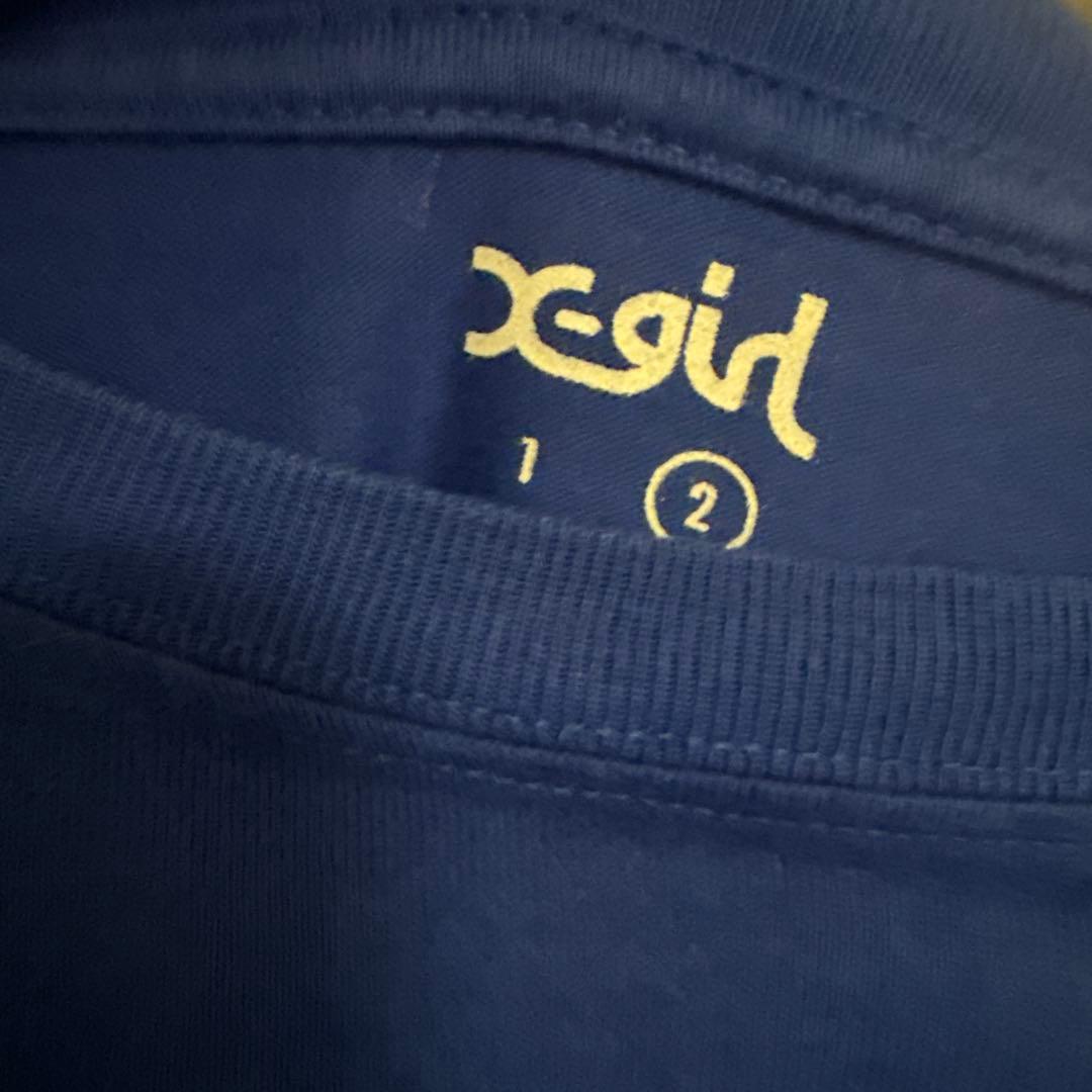 鮮やかな青色にピンクのプリントが映えるカジュアルな長袖Tシャツ。 - カラー: 青 - デザイン: ロゴ入り - 袖のデザイン: ピンクのプリント - スタイル: カジュアル 購入価格-¥6600 ご覧いただきありがとうございます。
