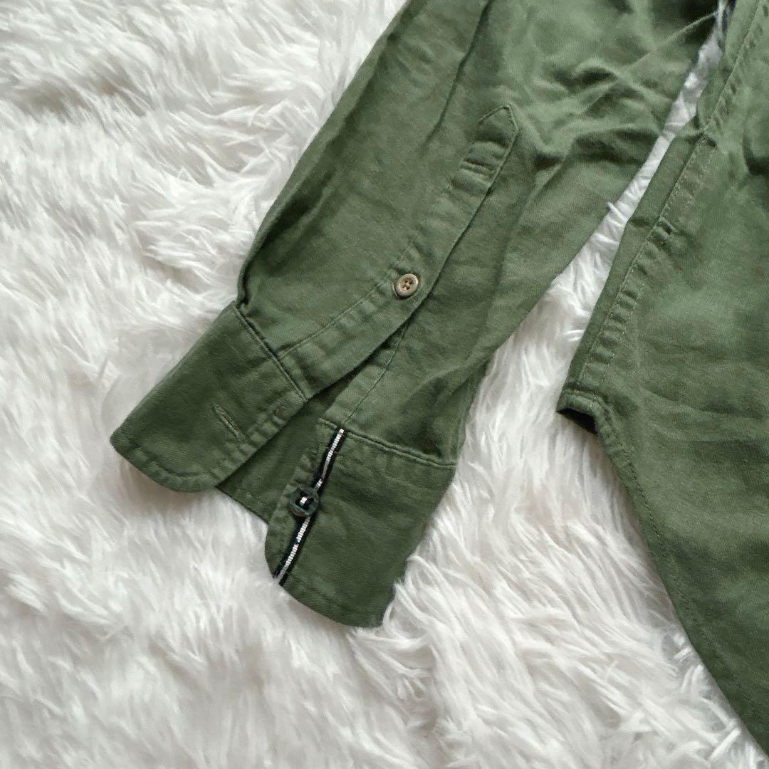 BOYCOTT 長袖シャツ コットン リネン混 カーキ 秋色 袖丈調整M