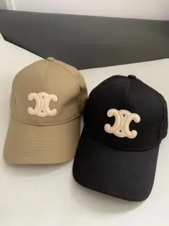 セリーヌ ベージュと黒の刺繍ロゴキャップセット
