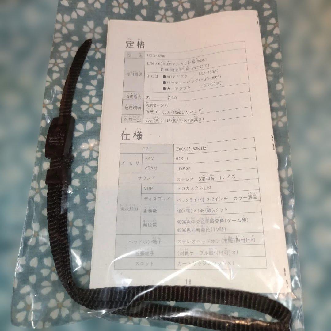 ゲームギア HGG-3200 説明書 電源アダプター ストラップ 4点セット