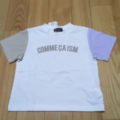 新品☆コムサイズム 白×ベージュ×ラベンダー 半袖ロゴTシャツ100㎝